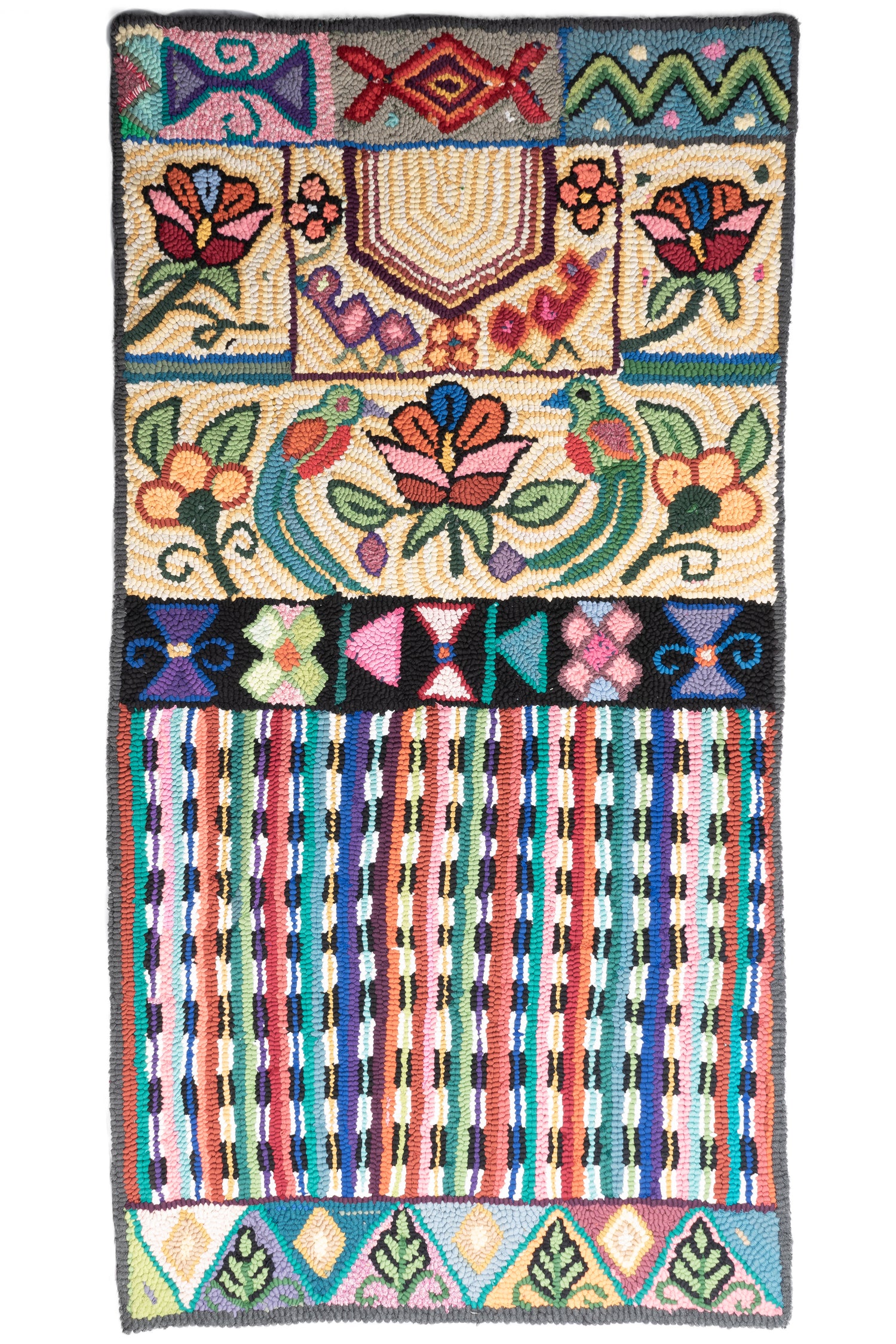 Mayan language: Tzutujil Artistic style: Precise, very fine stitching, elegant birds inspired...