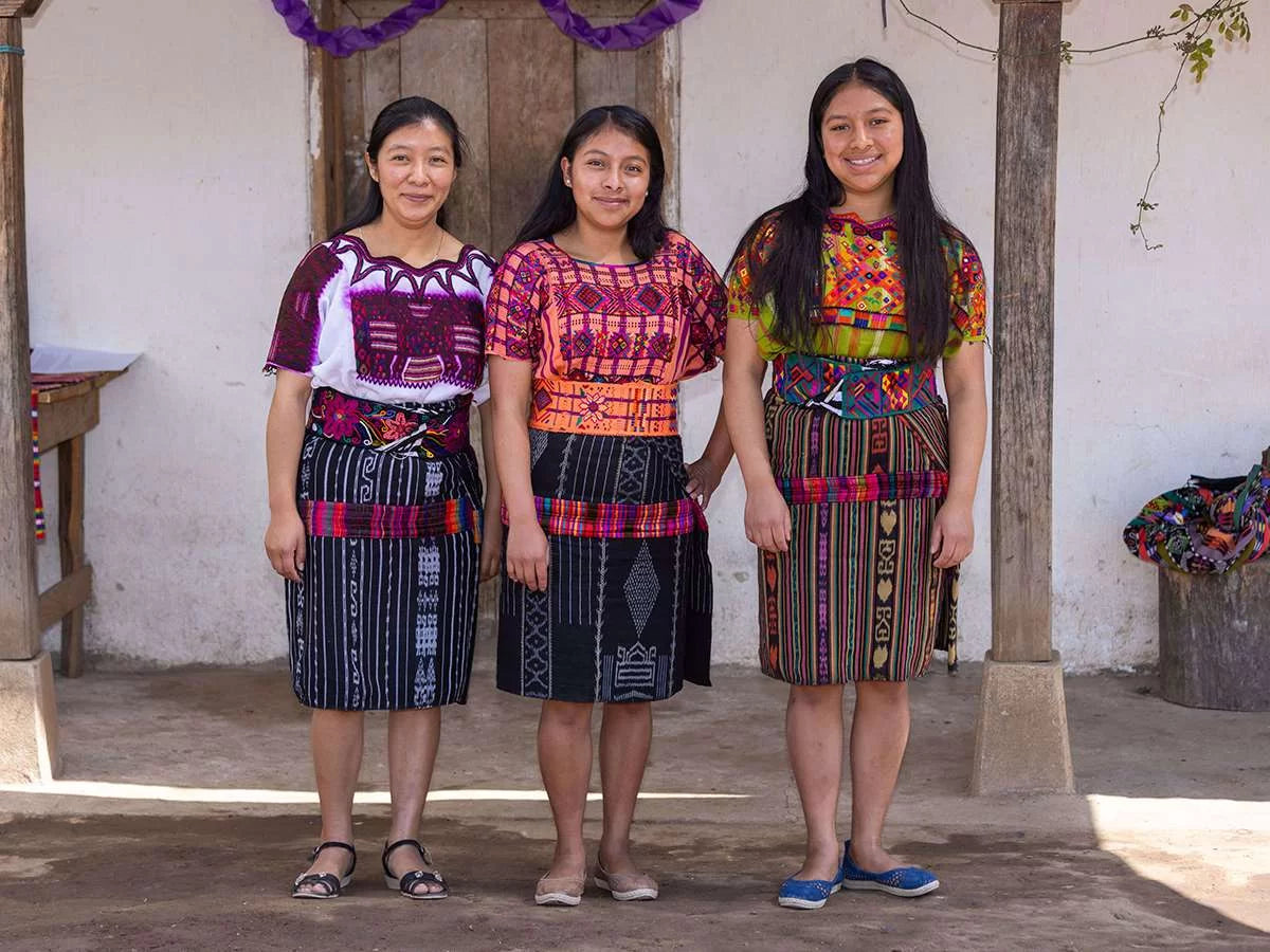 Mayan language: TzutujilArtistic style: Precise, very fine stitching, elegant birds inspired by the huipiles of Santiago Atitlán, and sophisticated compositions expressing local legends and traditions Artists