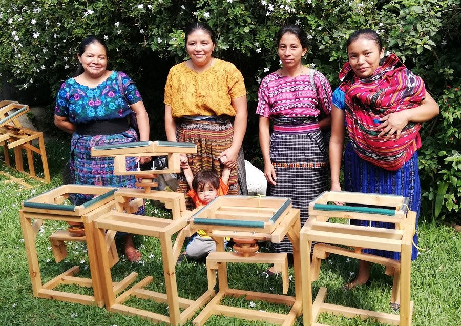 Woodcarver Salvador Sojuel Tzina sourced local, sustainably forested wood varieties for use in footstools, doll stands, frames, and tools