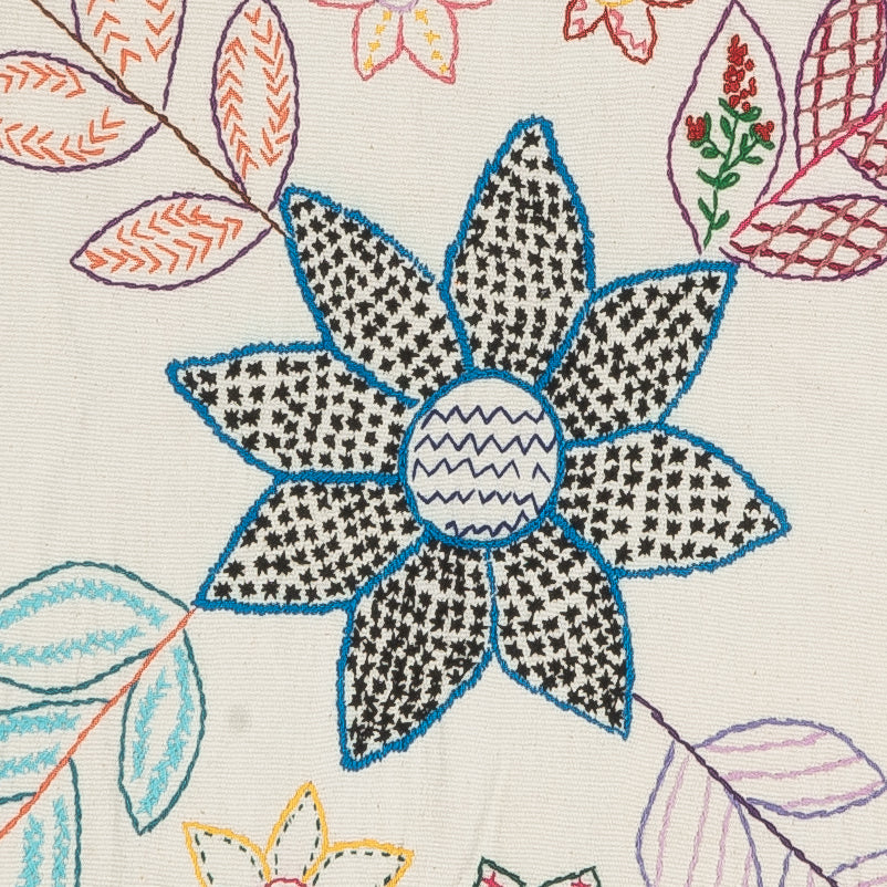 Embroidered designs of flowers represent the patterns of huipiles and the nature of Guatemala.