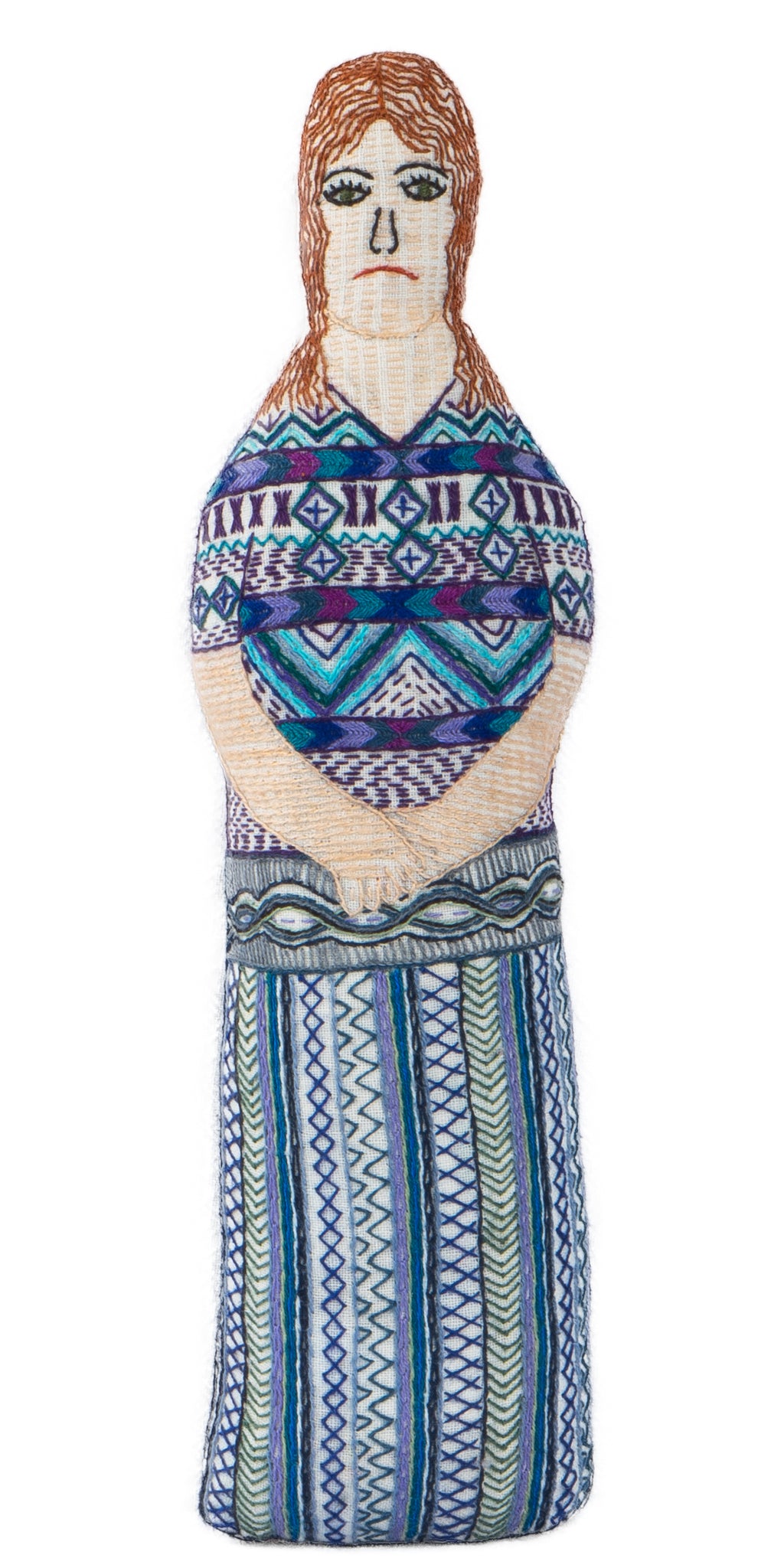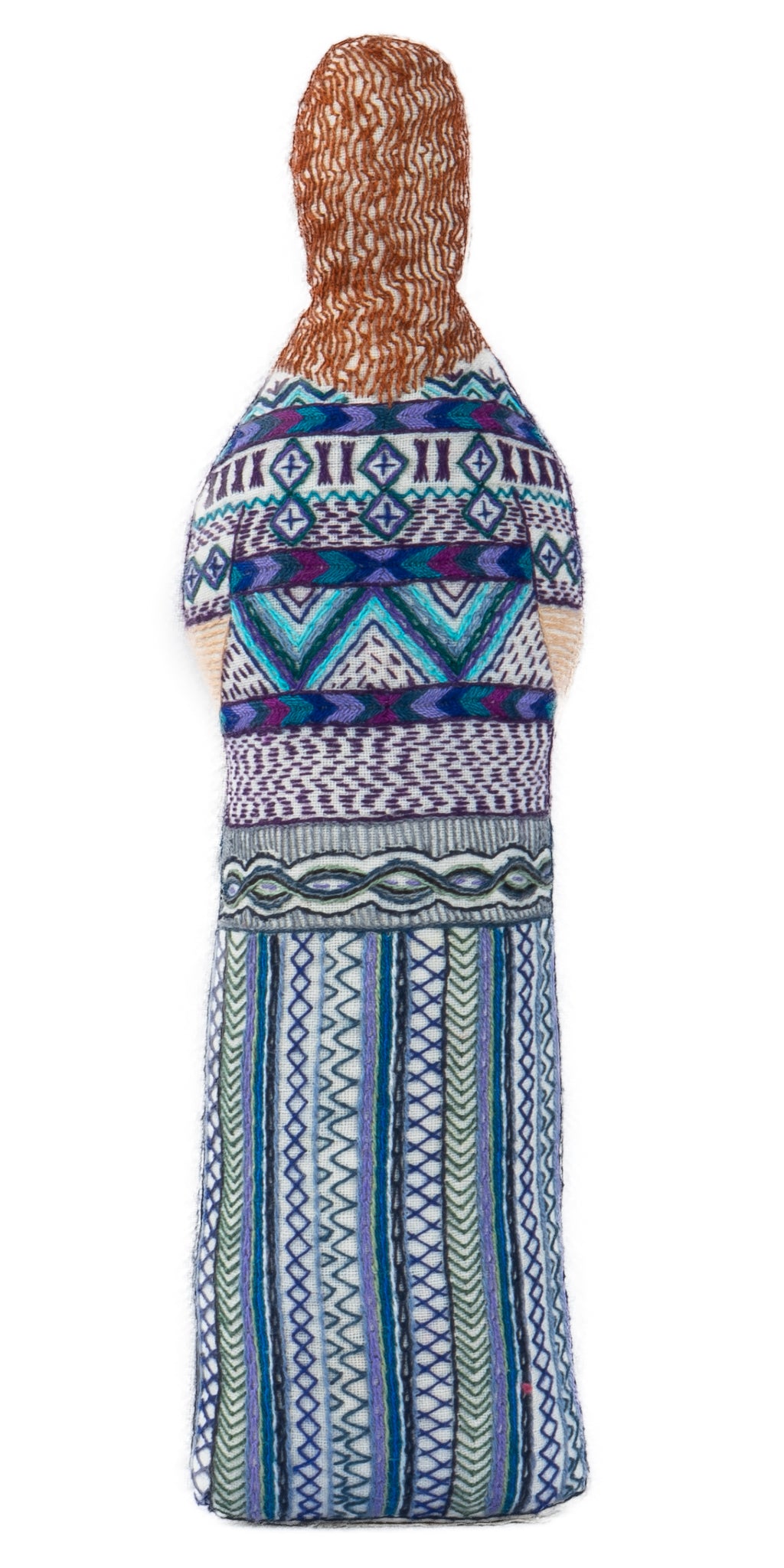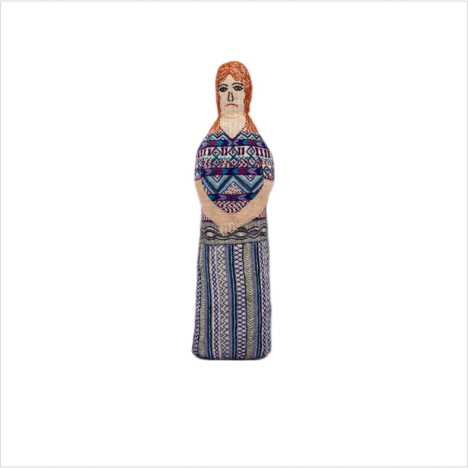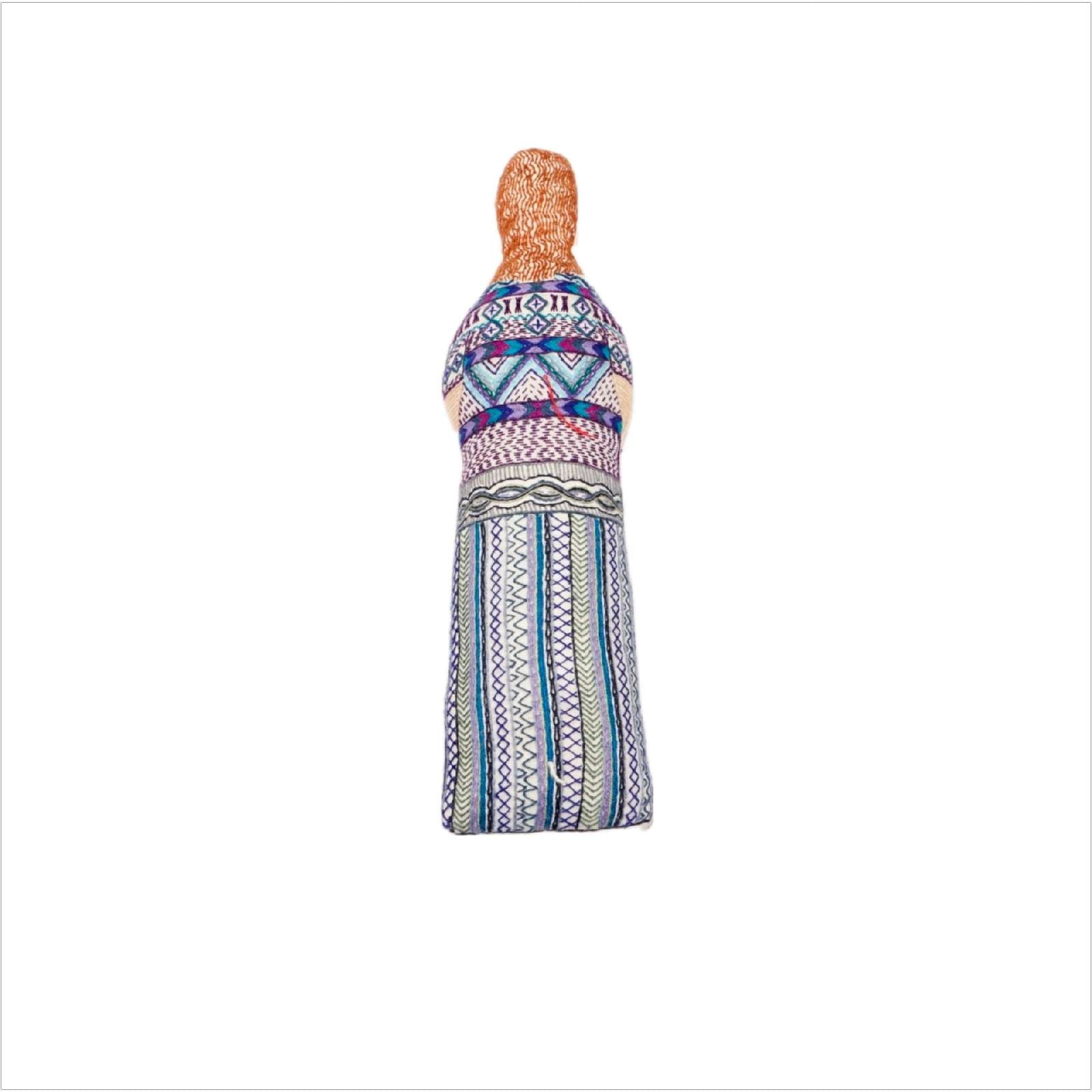 "Embroidered doll featuring designs that represent the traditional costumes of various regions of Guatemala."