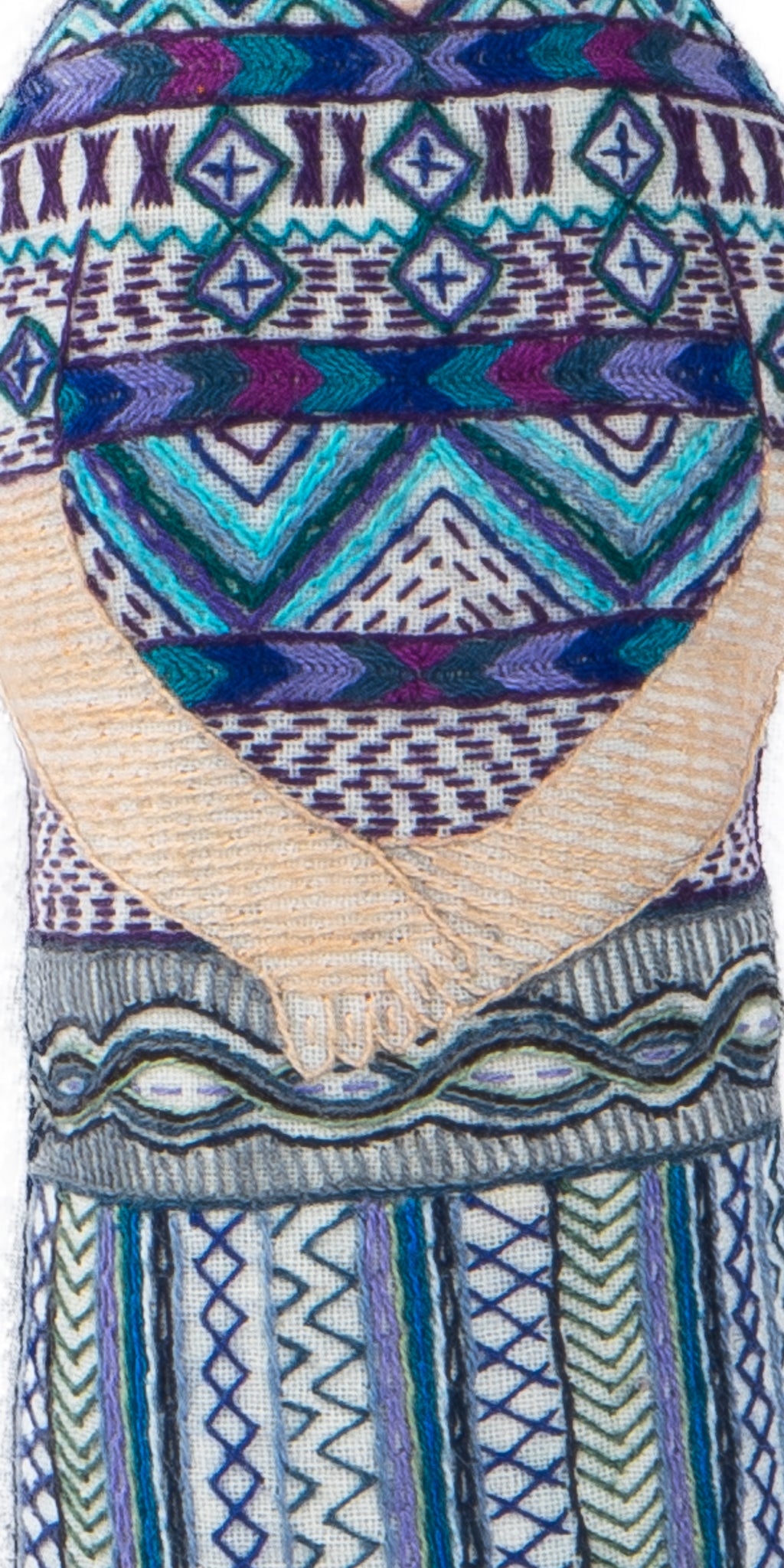 This work of art was designed and hand-stitched by Micaela Yaj Sunú, member of the Santiago Atitlán embroidery group.