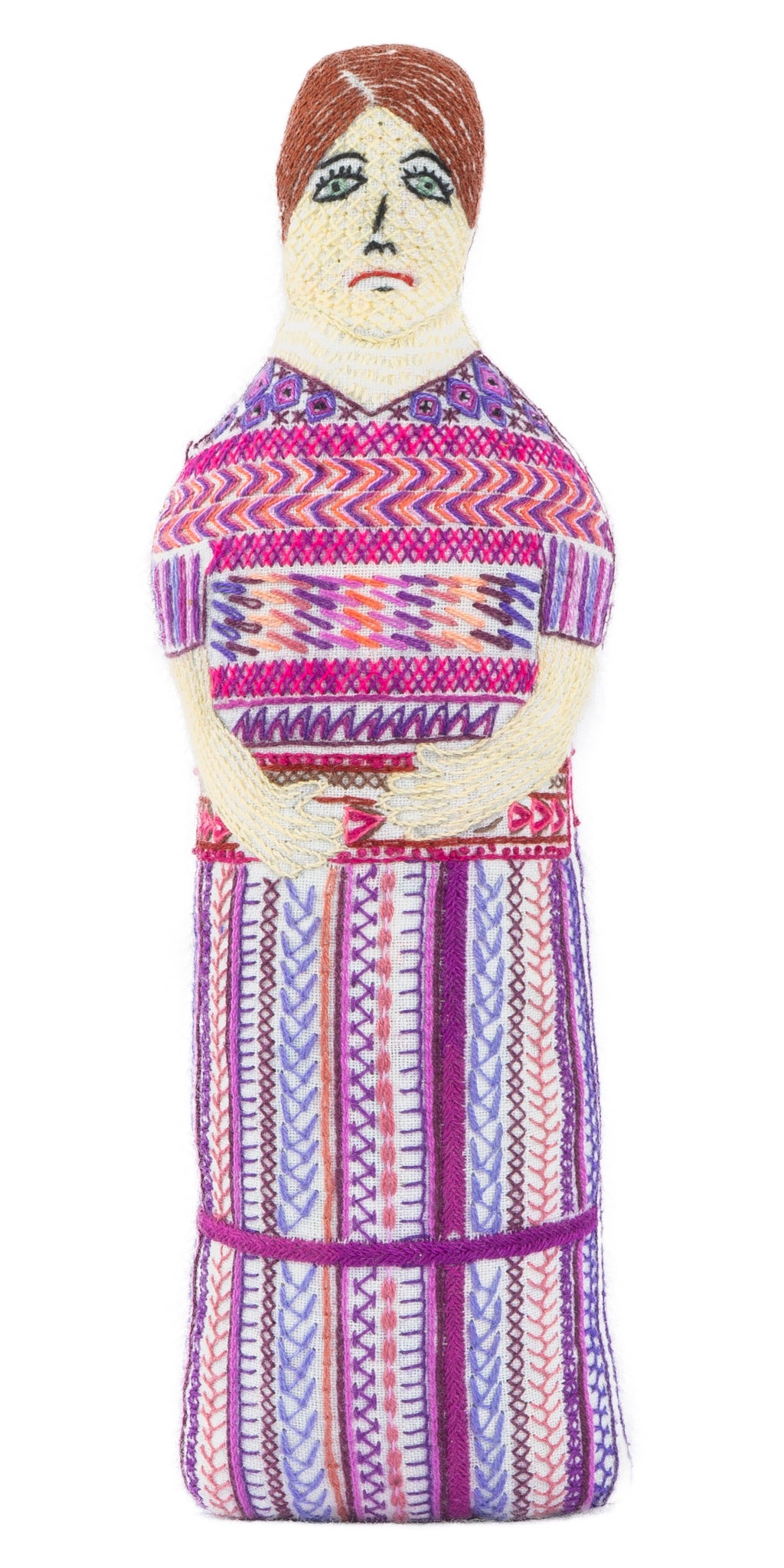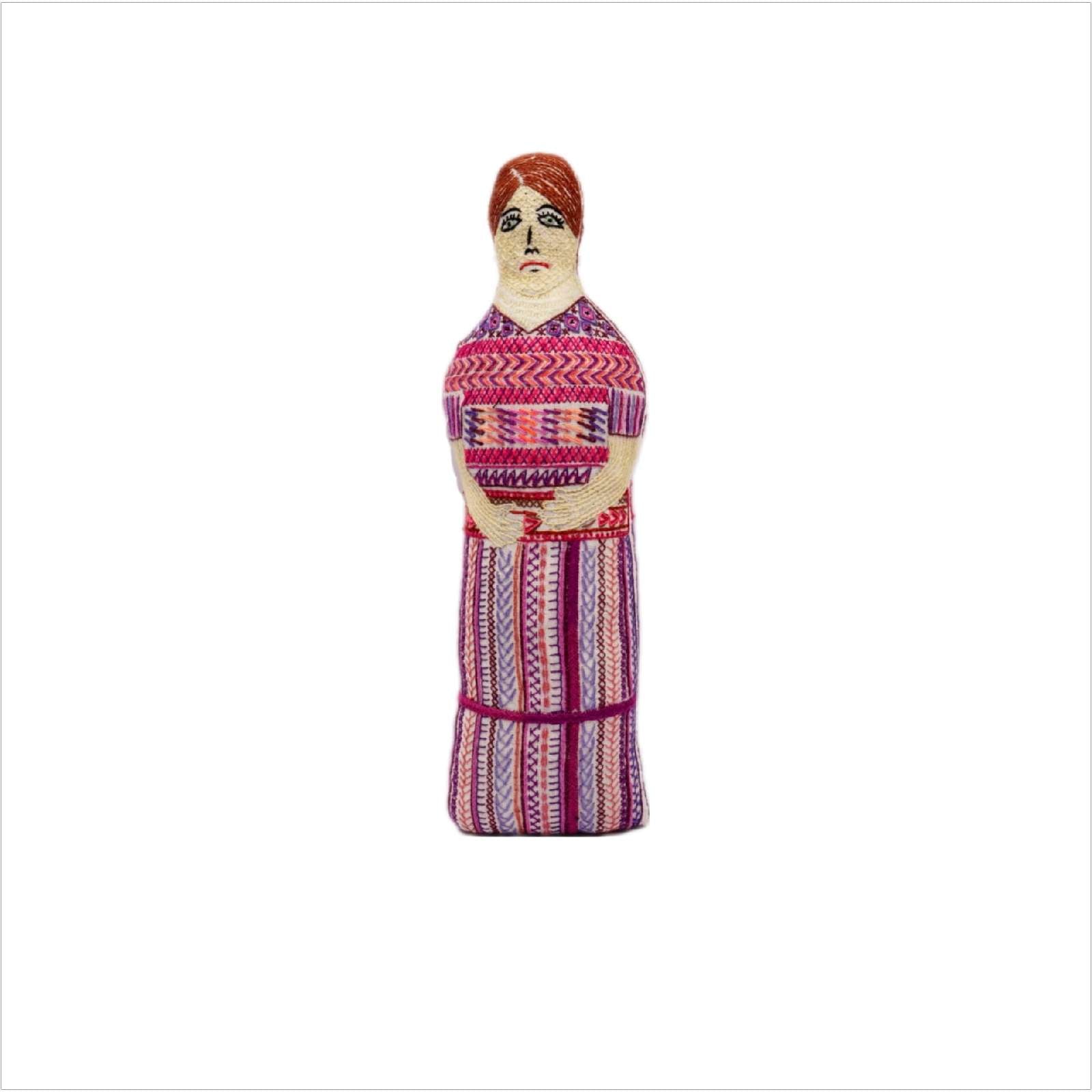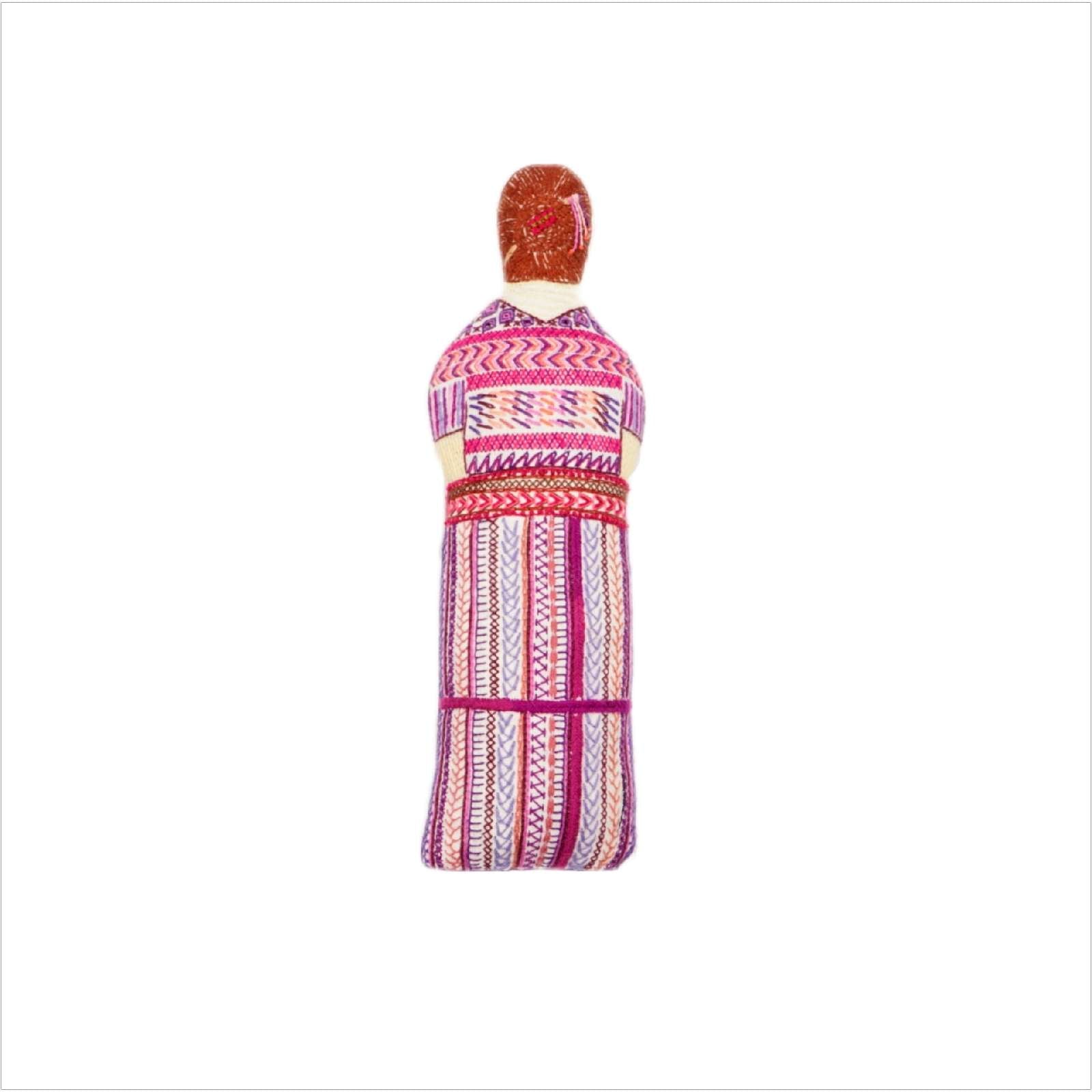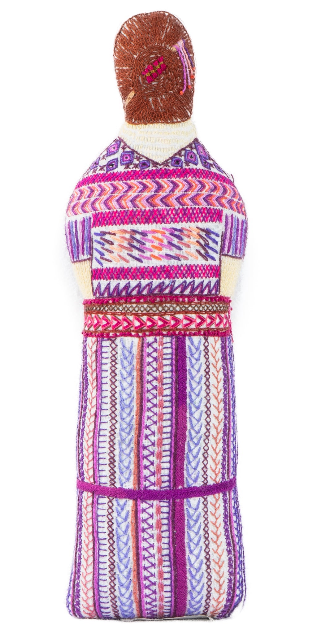 "Embroidered doll featuring designs that represent the traditional costumes of various regions of Guatemala."