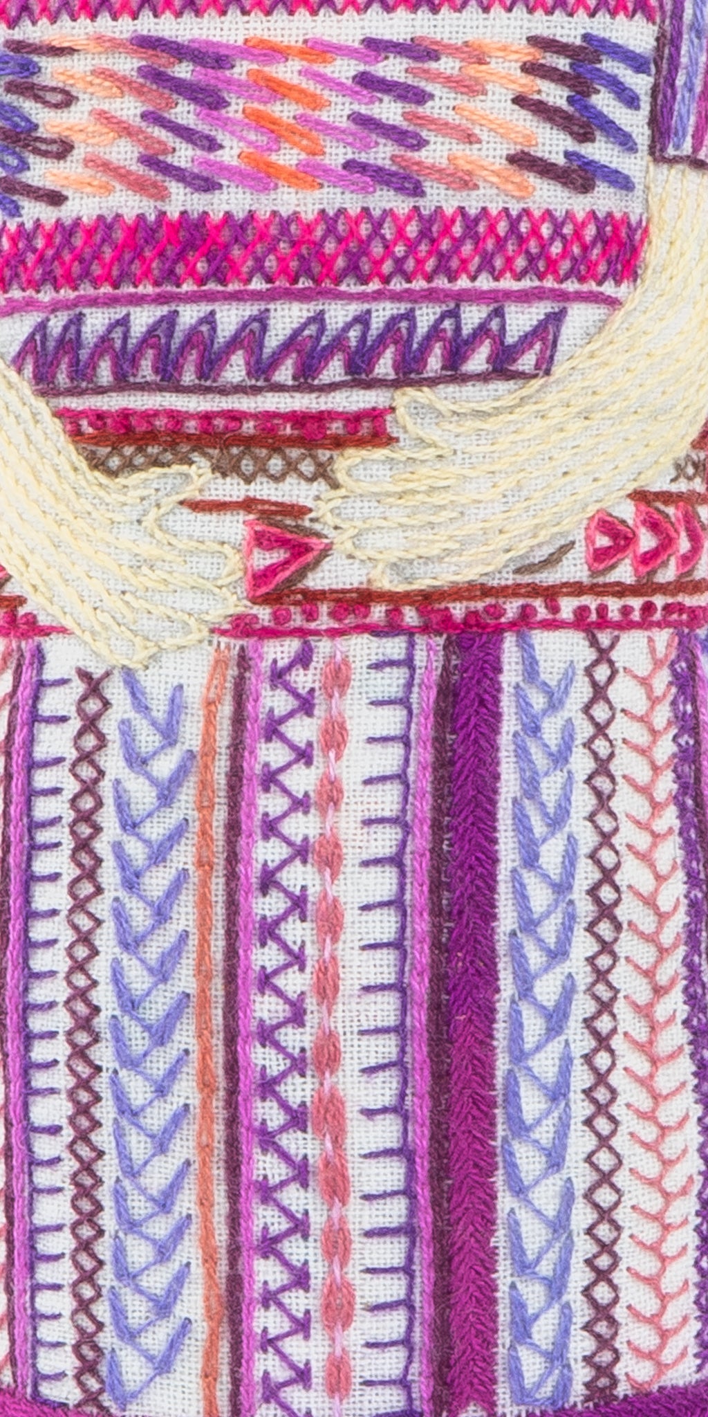 This work of art was designed and hand-stitched by Juana Ajcot Chavajay, member of the Santiago Atitlán embroidery group.