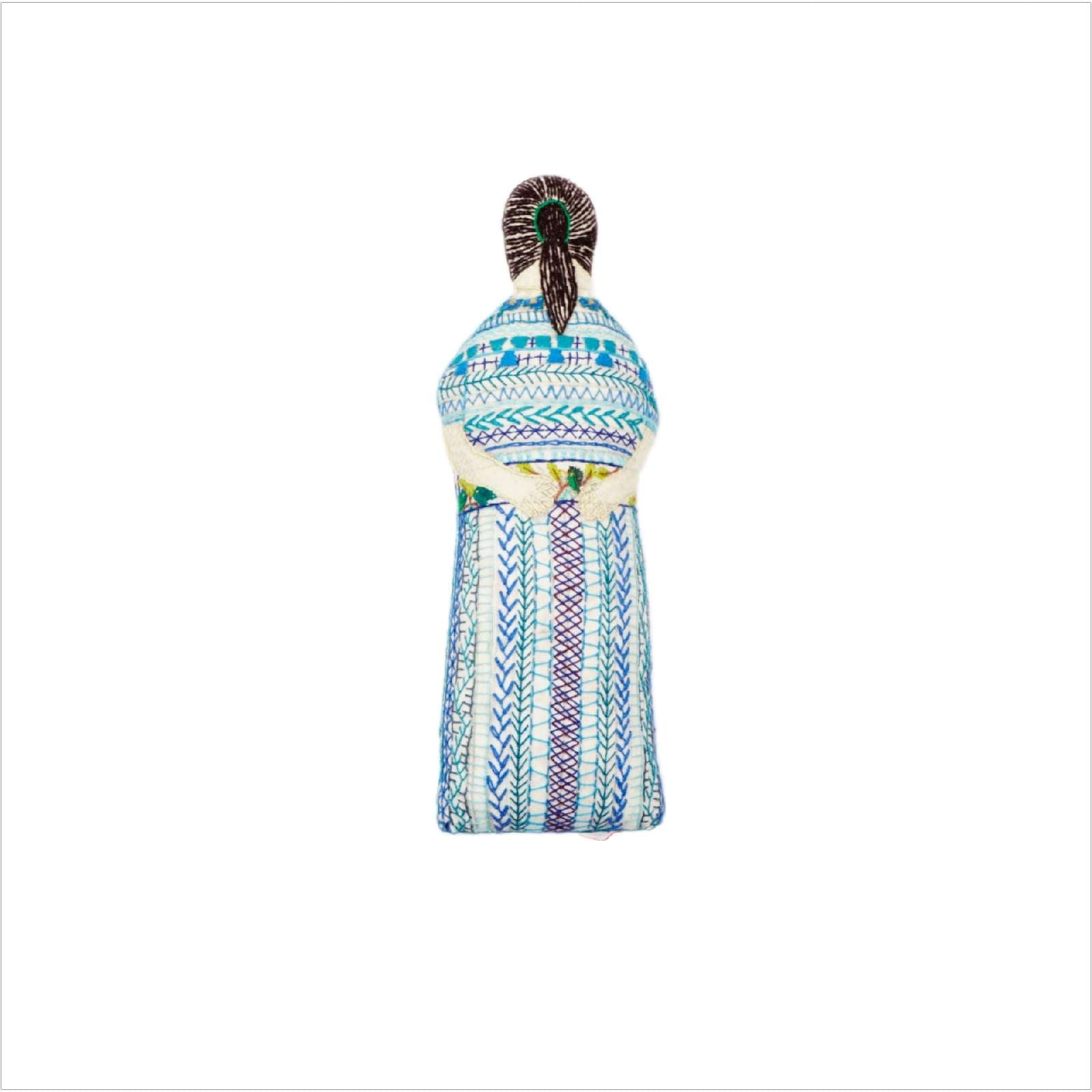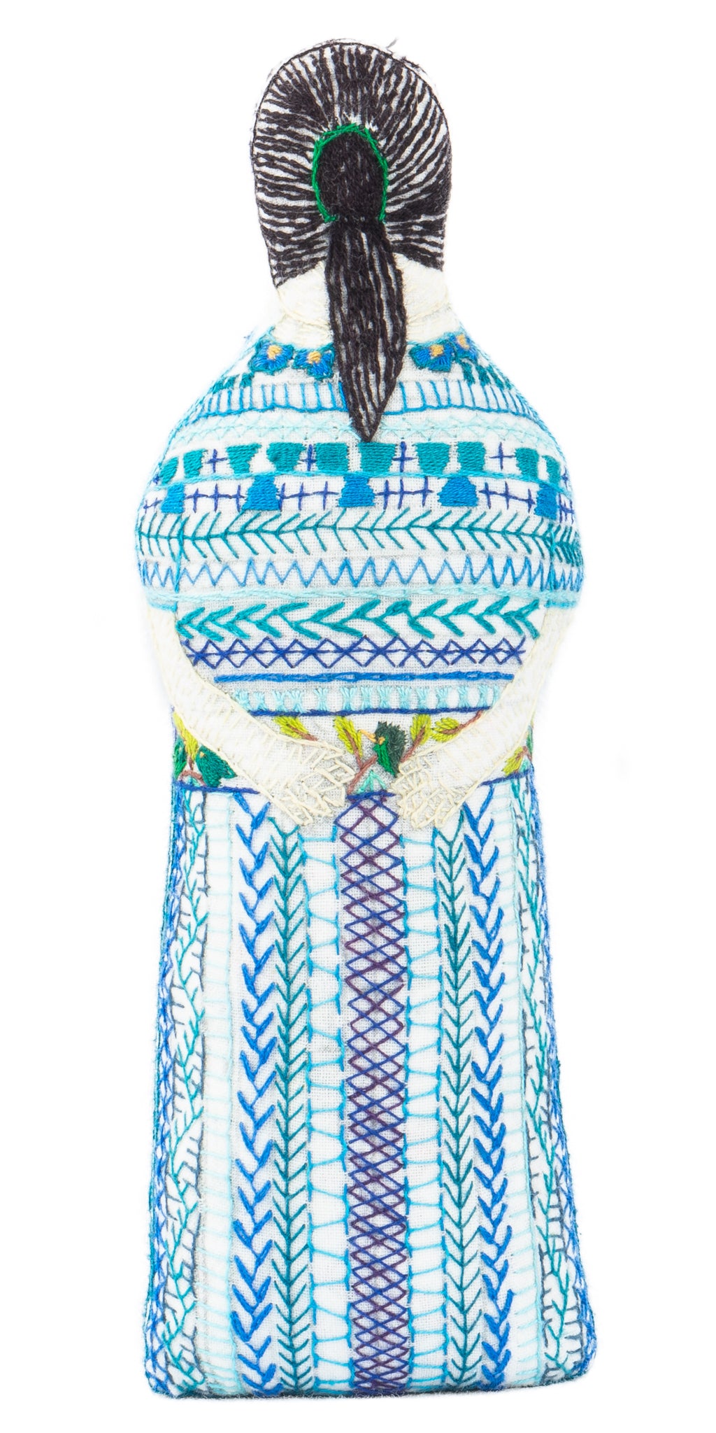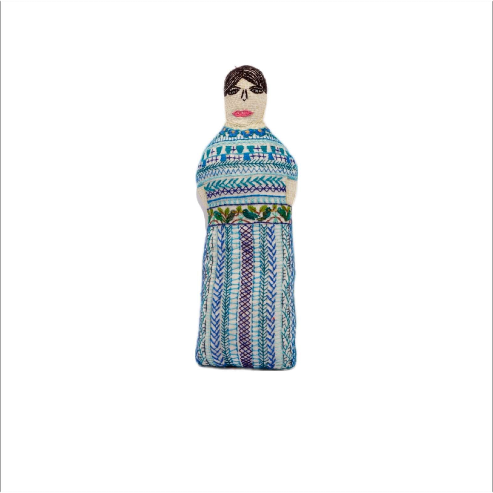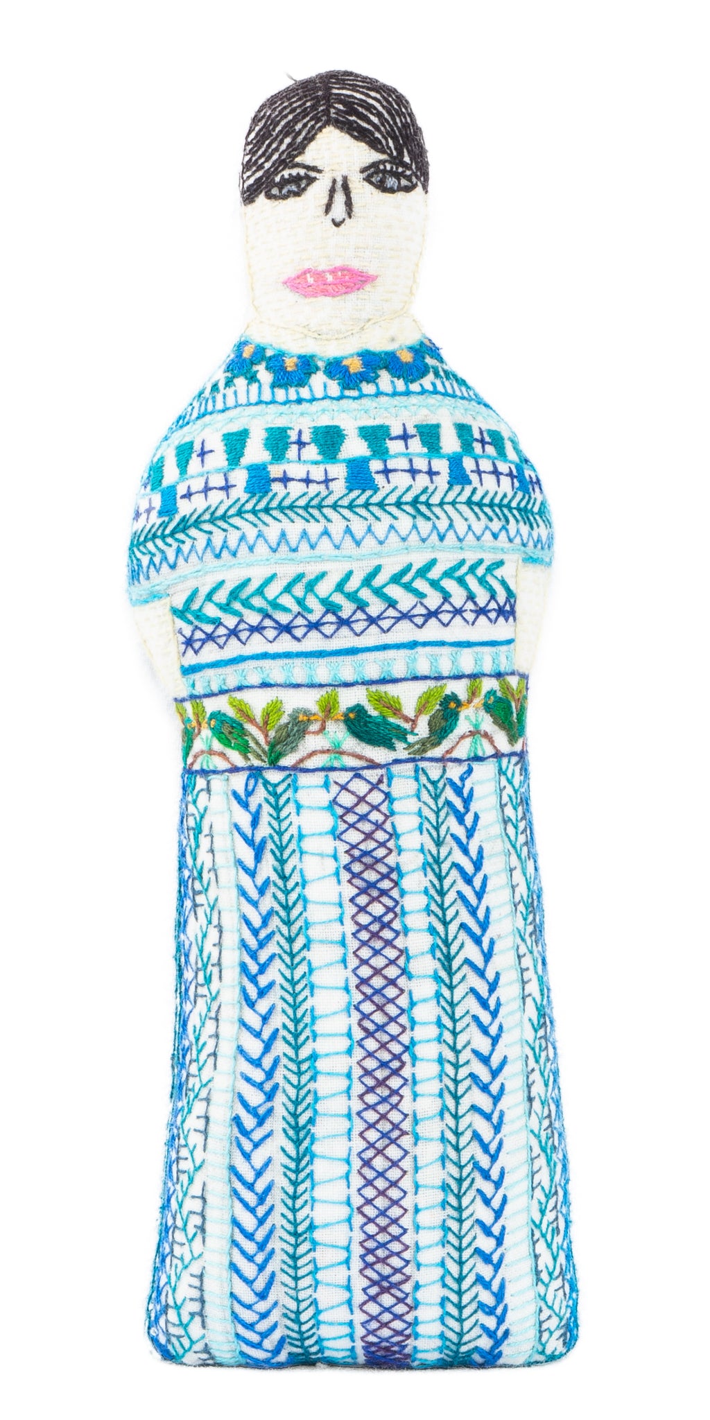 "Embroidered doll featuring designs that represent the traditional costumes of various regions of Guatemala."