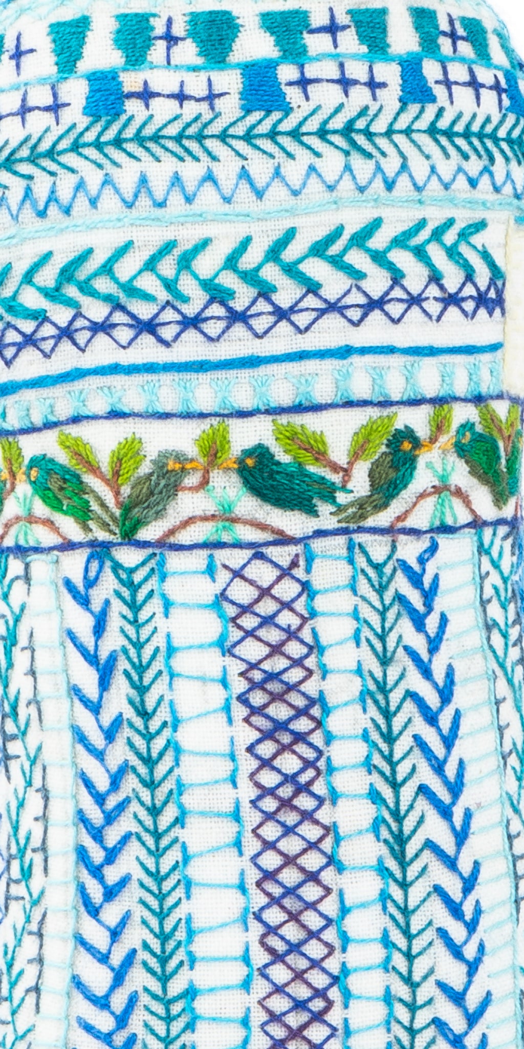 This work of art was designed and hand-stitched by María Magdalena Tziná Vásquez, member of the Santiago Atitlán embroidery group.