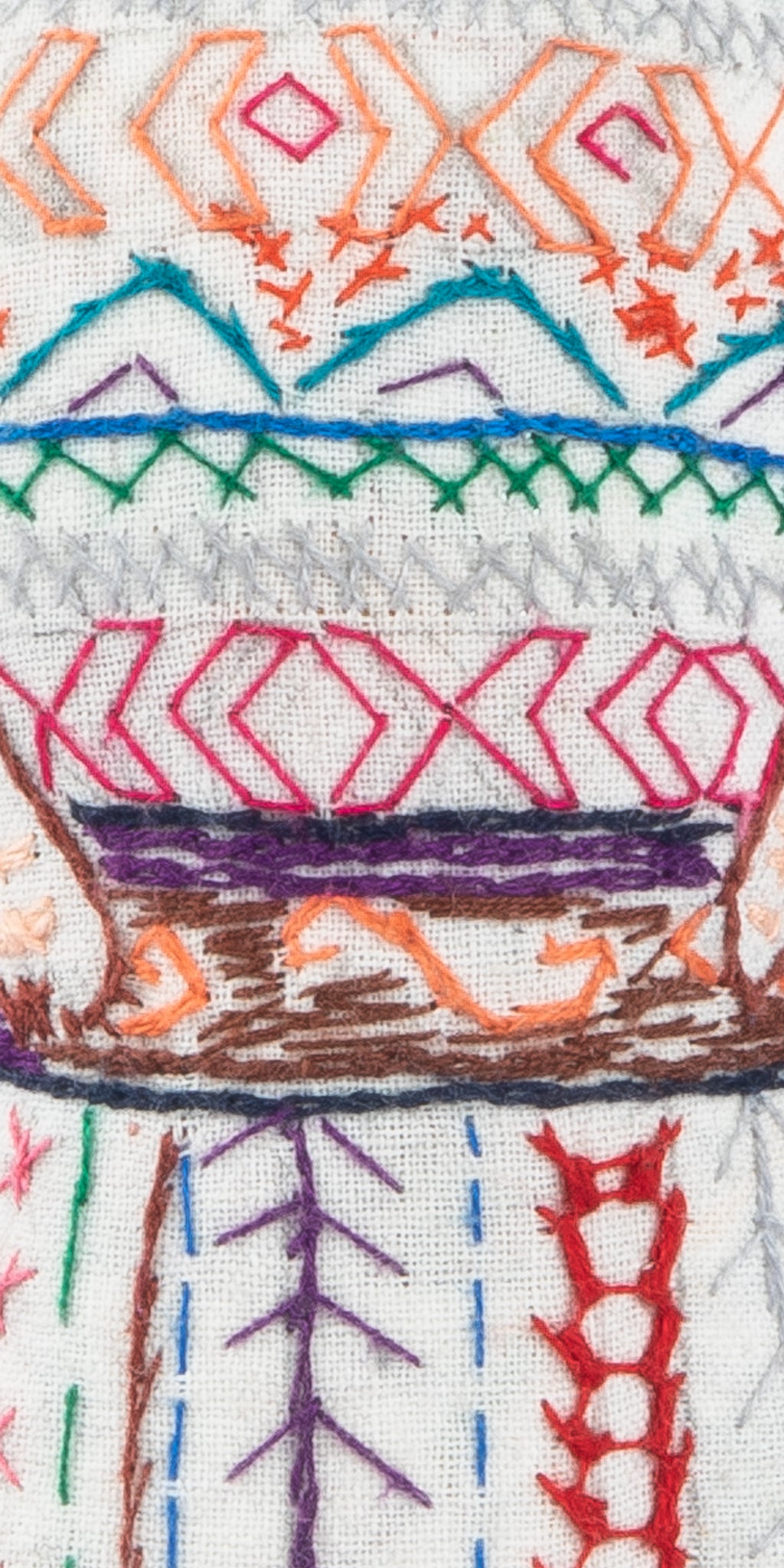 This work of art was designed and hand-stitched by Cipriana García Ajpop, member of the Totonicapán embroidery group.