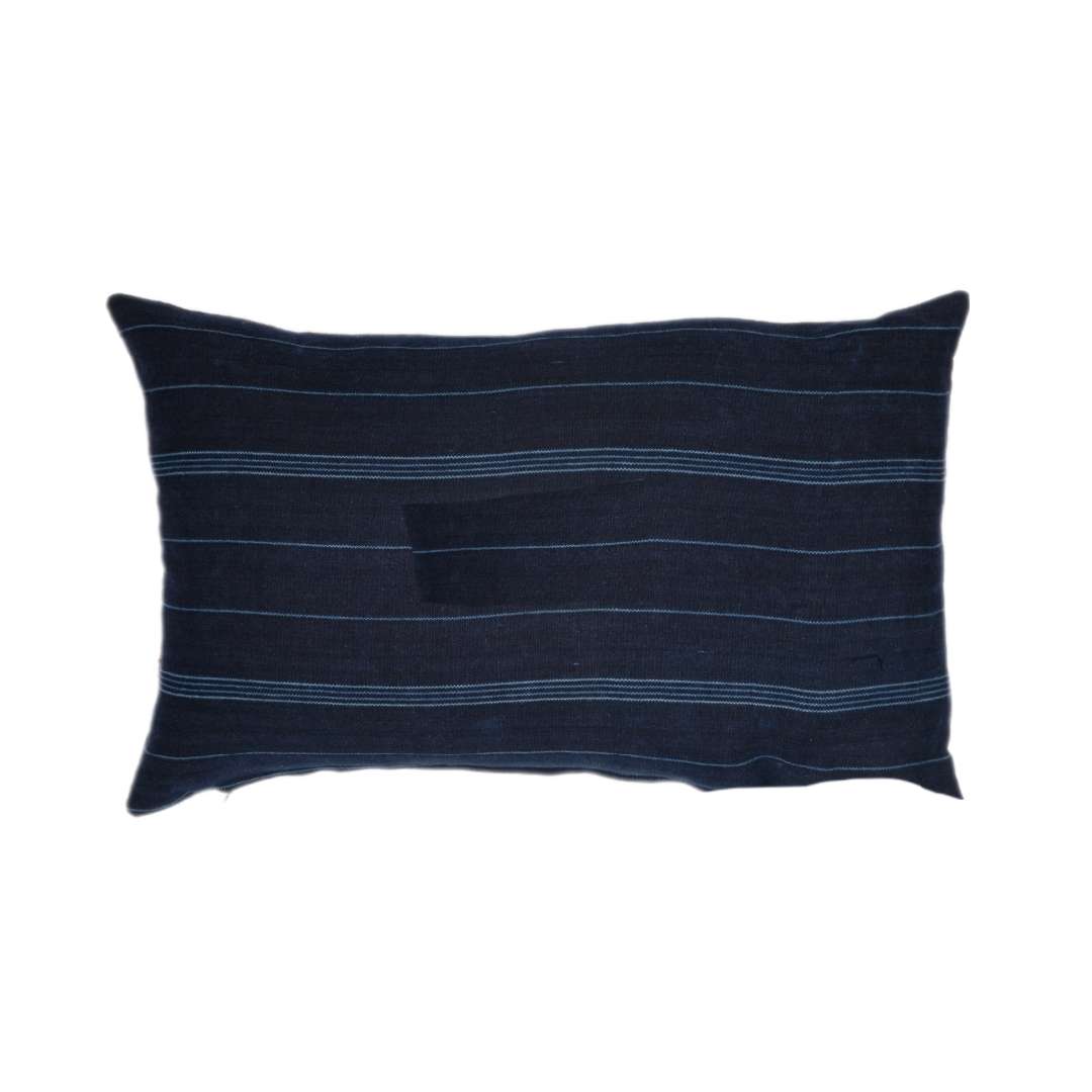 The embroidery is done in a variety of stitches in mostly shades of green. The design is a combination of birds, geometrics and fauna on a deep indigo fabric. Beautiful on the couch or the bed.