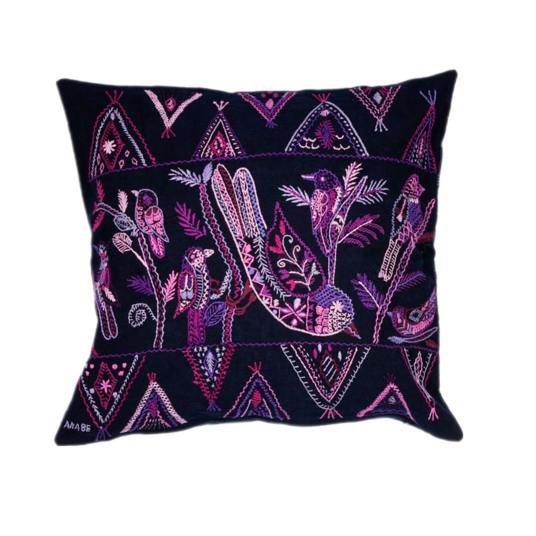 Hand embroidered cushion cover measures 18 x 18 inches.