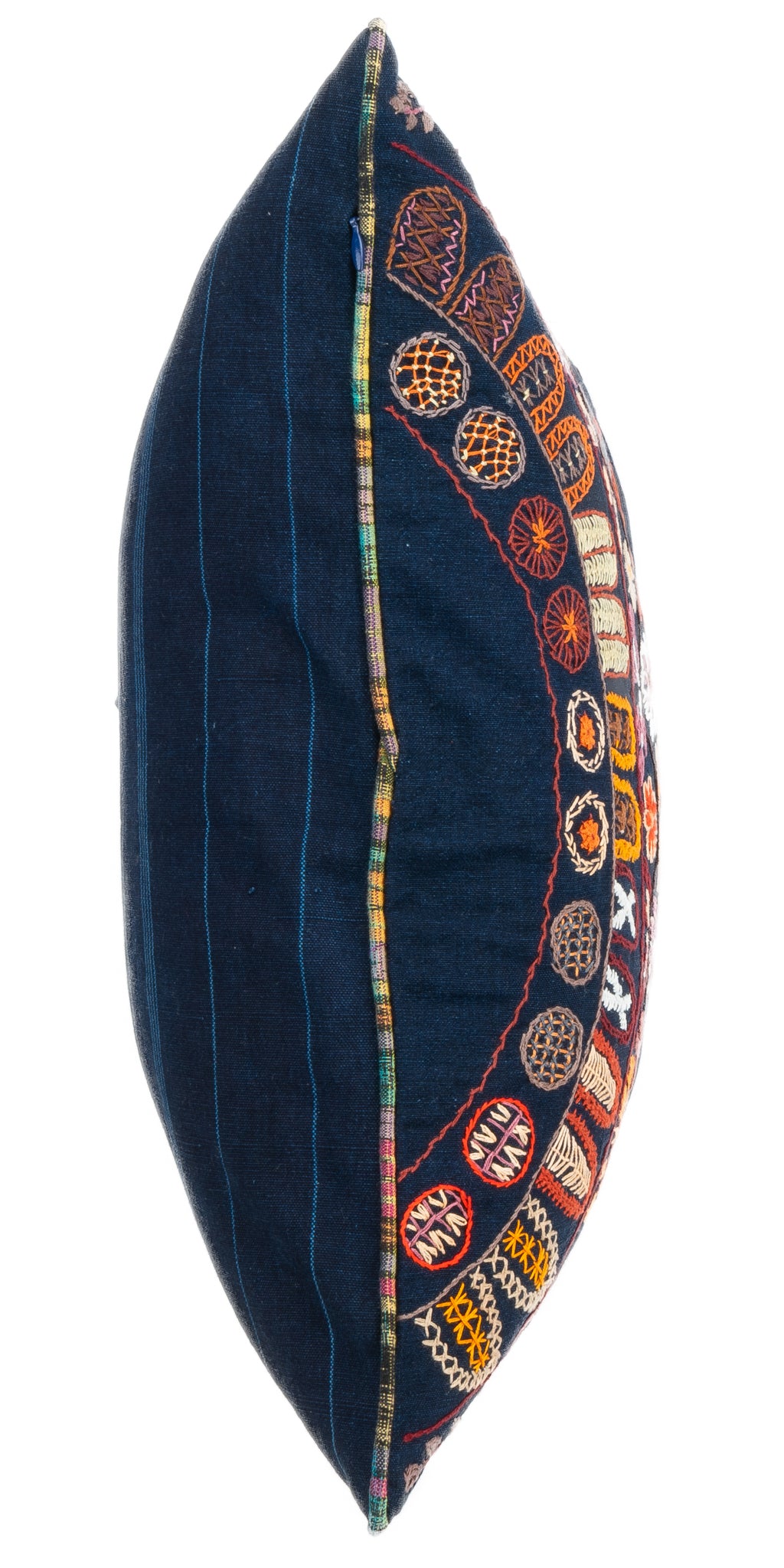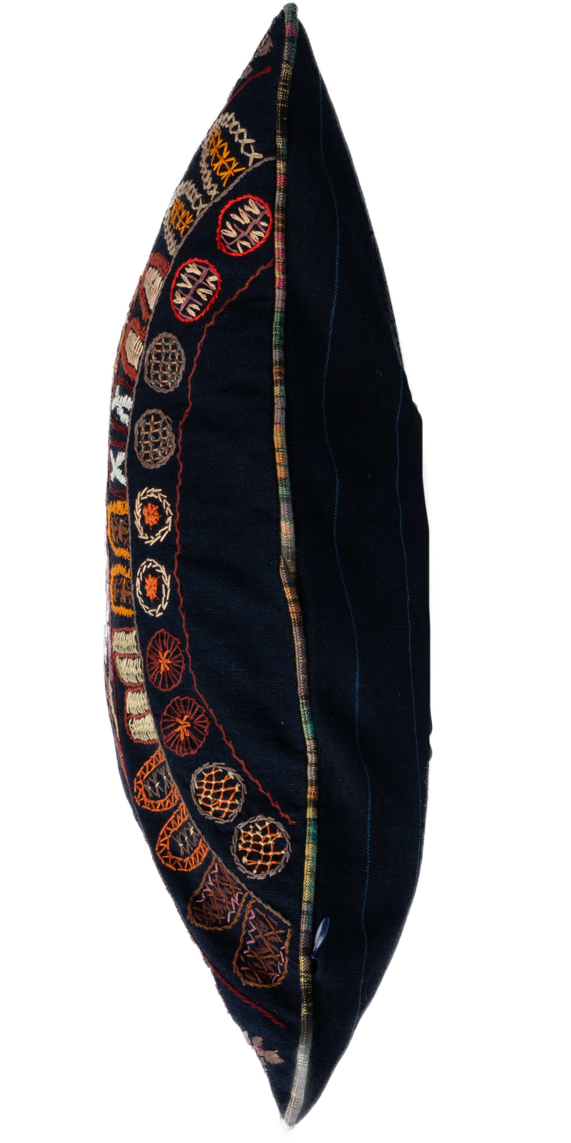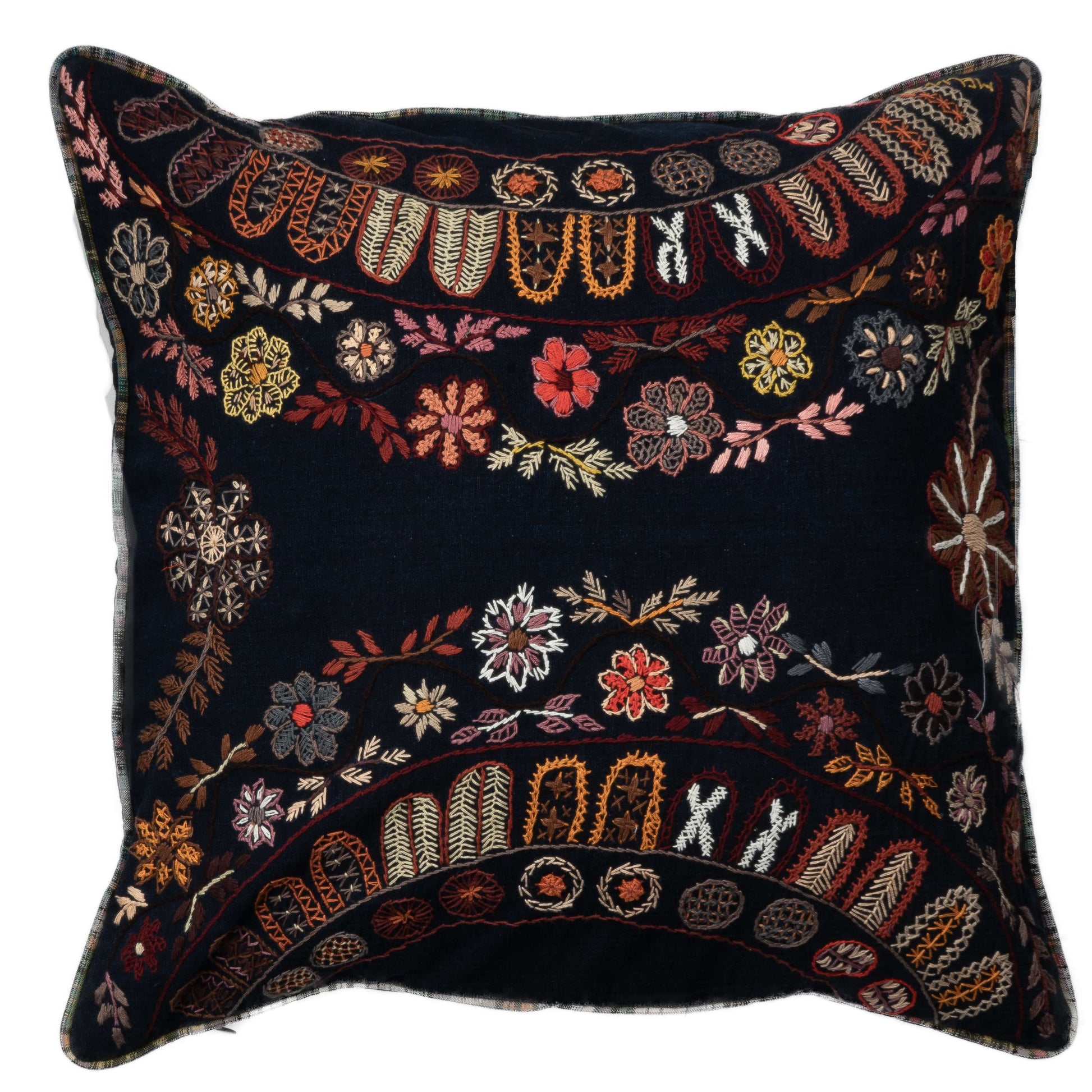 This embroidered pillow was designed and hand-stitched by Melina Yol Chiquitó, member of the Sumpango embroidery group. The design is based on the traditional blouses w orn bythe Maya women. The embroidery is done with a variety of stitches in mostly reds, brick, cream, pumpkin, dusty rose and grey. he birds and geometric designs are done with a variety of embroidery stitches. Beautiful on the couch or the bed.