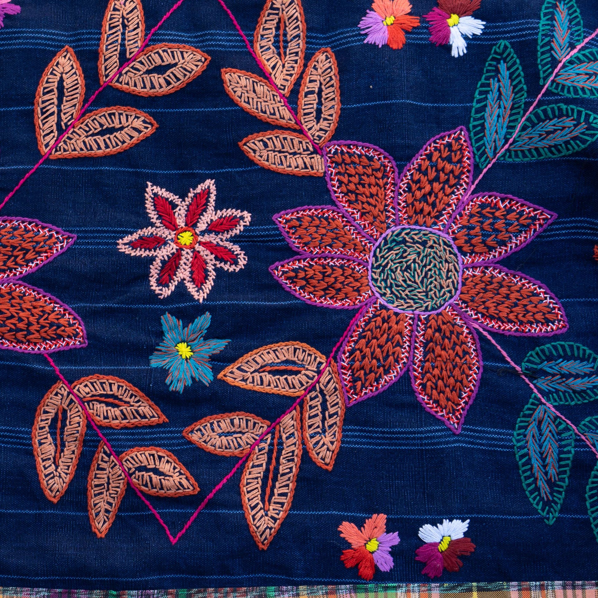 "Embroidered designs of flowers that represent the patterns of huipiles and the nature of Guatemala."