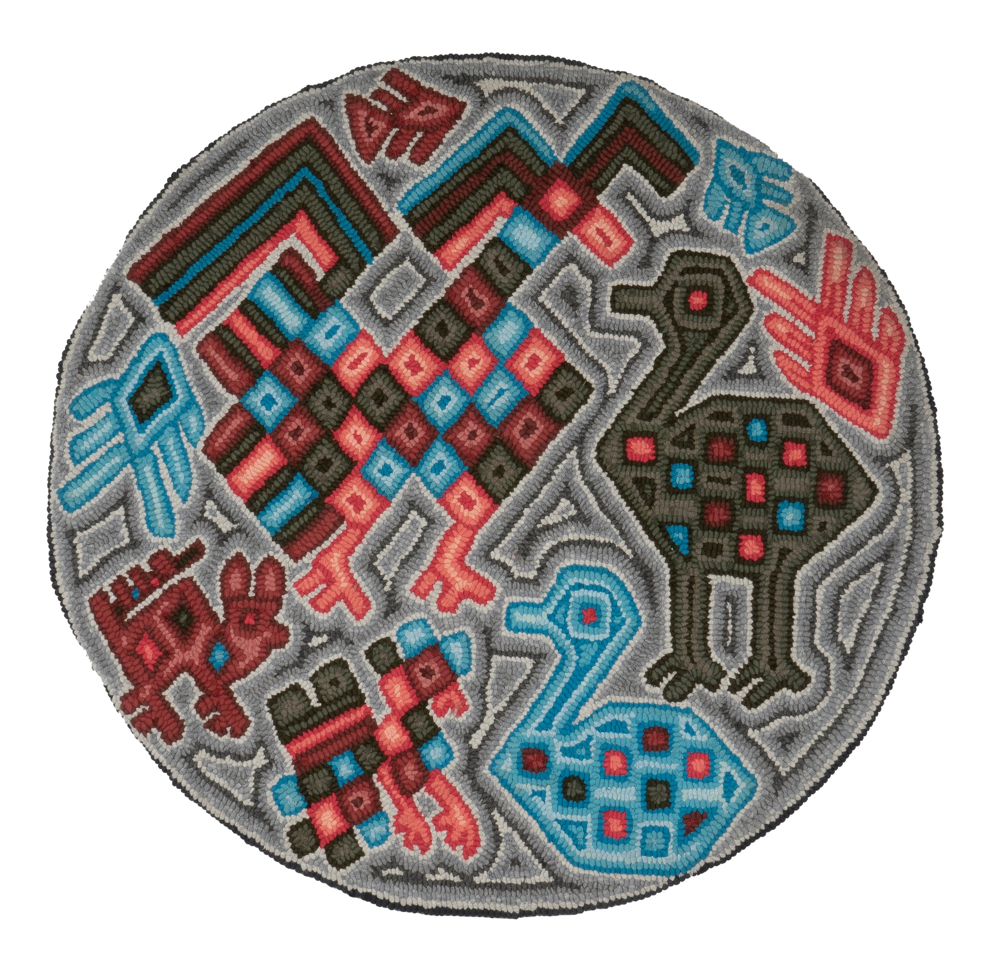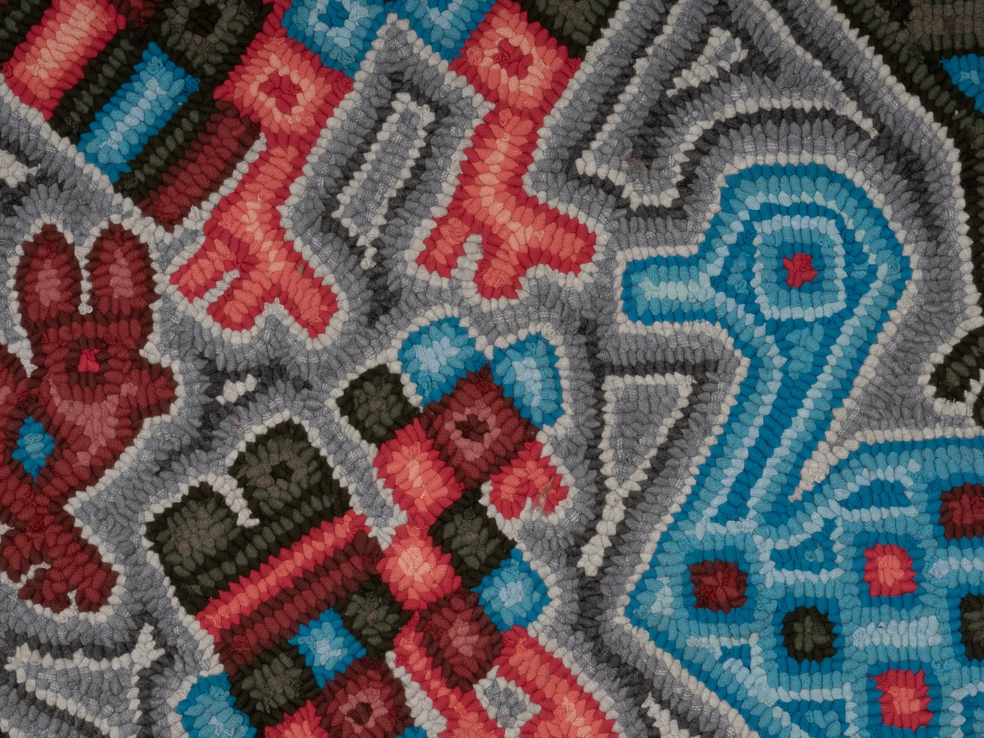 This work of art was designed and crafted by Imelda Estela Pich Chopén, member of the Chuacruz rug hooking group.