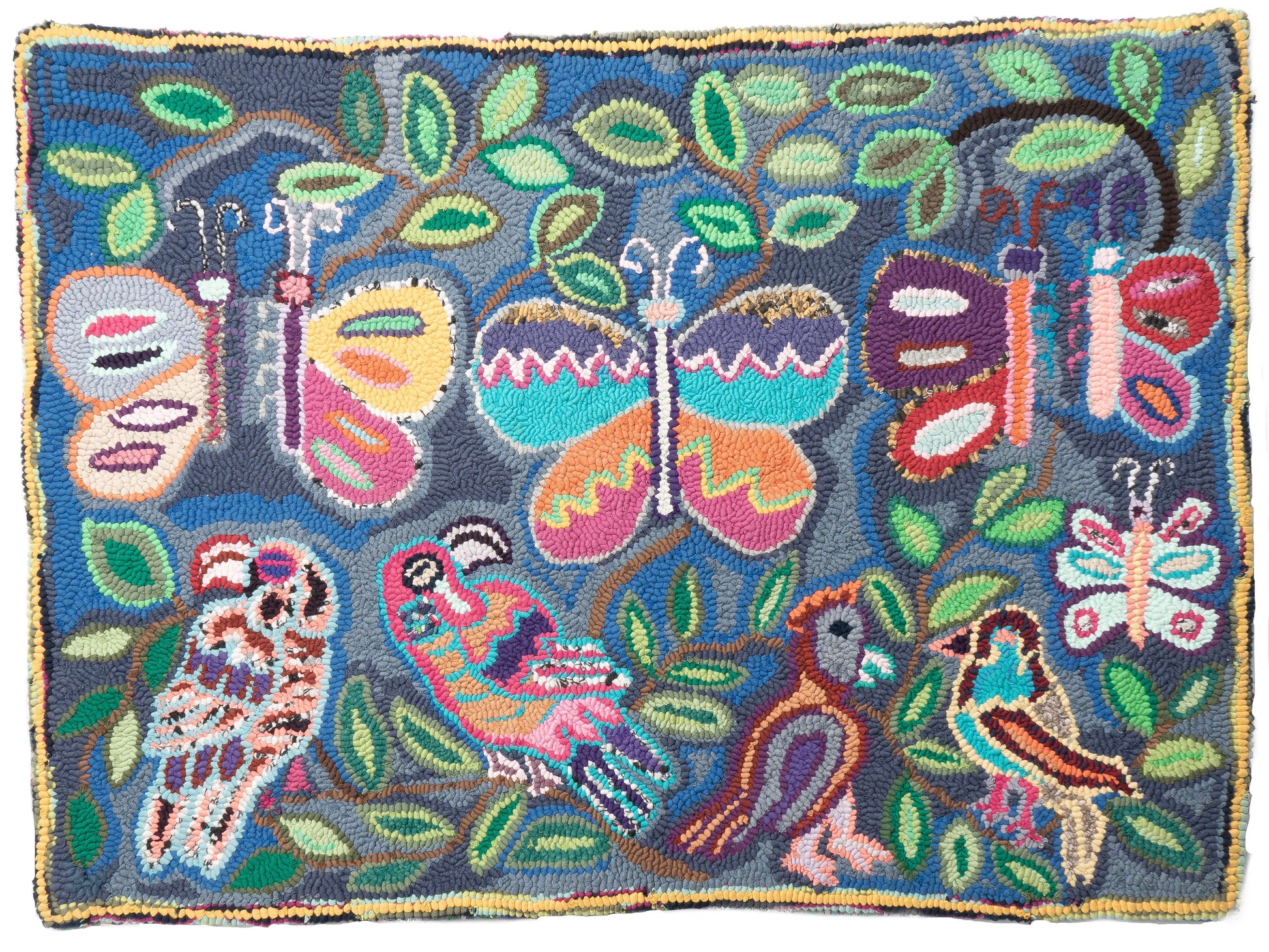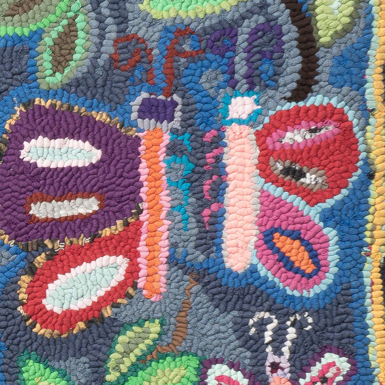 This work of art was designed and crafted by Manuela Calel Calel de Solis, member of the Patanatic rug hooking group. This piece is unique and the design is the result of the artist’s creative vision.