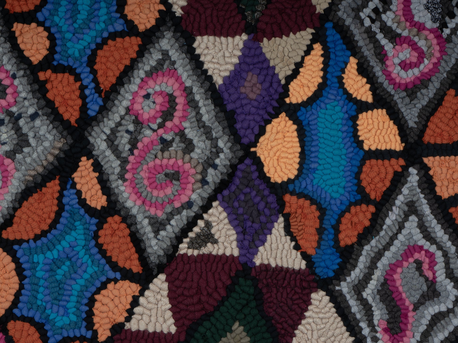 This work of art was designed and crafted by Irma Elizabeth de Léon Vargas de Sazo, member of the Patanatic rug hooking group.