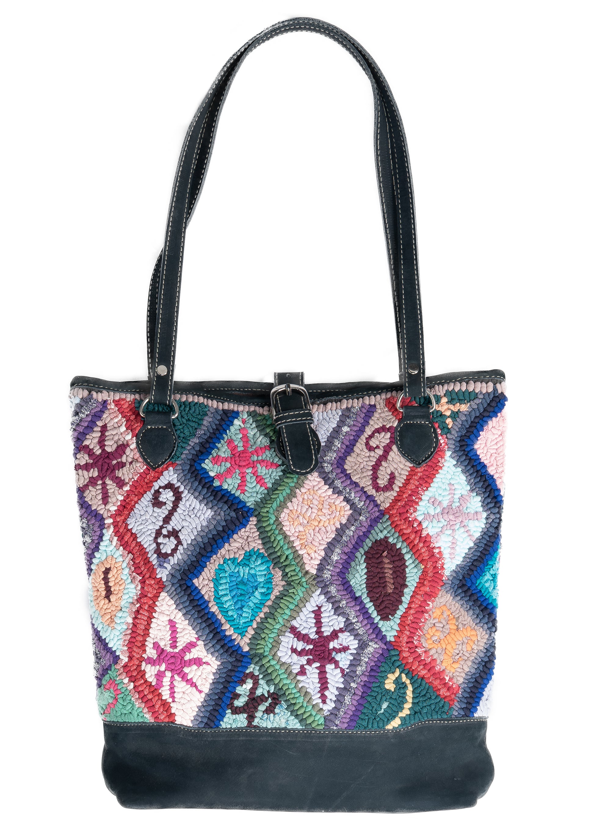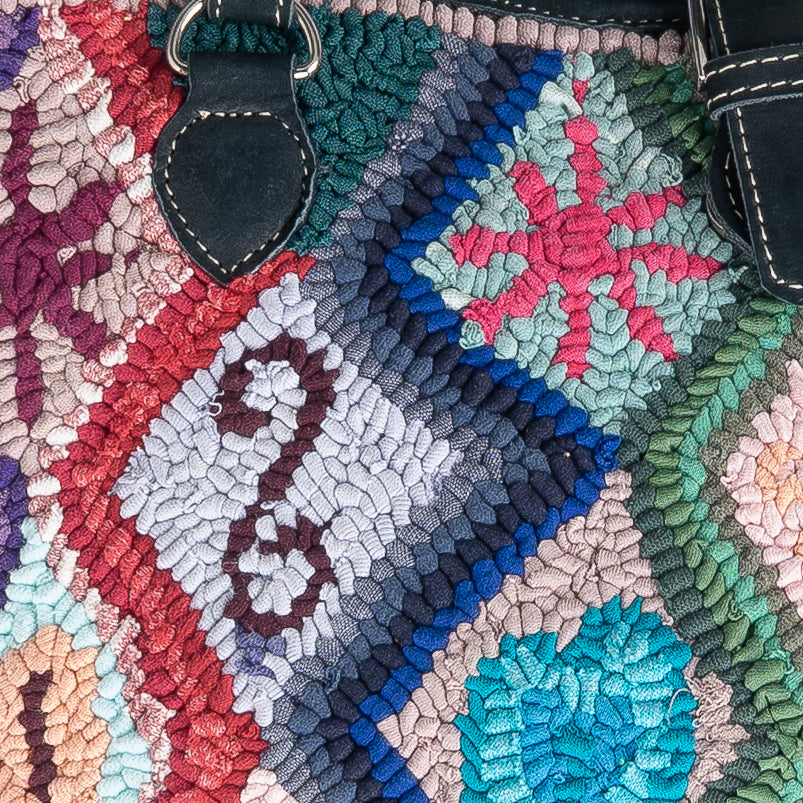 This one of a kind handbag was designed and crafted by Nicolasa Pacay Barán de Barreno, member of the Patanatic rug hooking group.