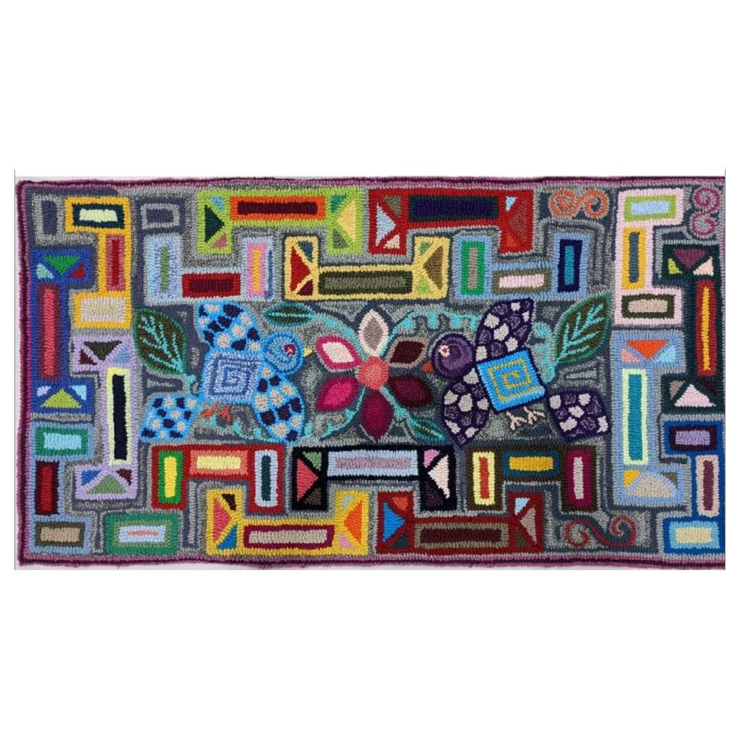 This work of art was designed and crafted by Manuela Calel Calel de Solis, member of the Patanatic rug hooking group. This piece is unique and the design is the result of the artist creative vision. Material: Recycled secondhand clothing and cotton base cloth. This artwork was made using 45-50 recycled garments. Care instructions: Spot clean with warm water and mild soap recommended. Shake to remove dust or sand. Vacuum with brush attachment and gentle suction only. Lay flat to dry.