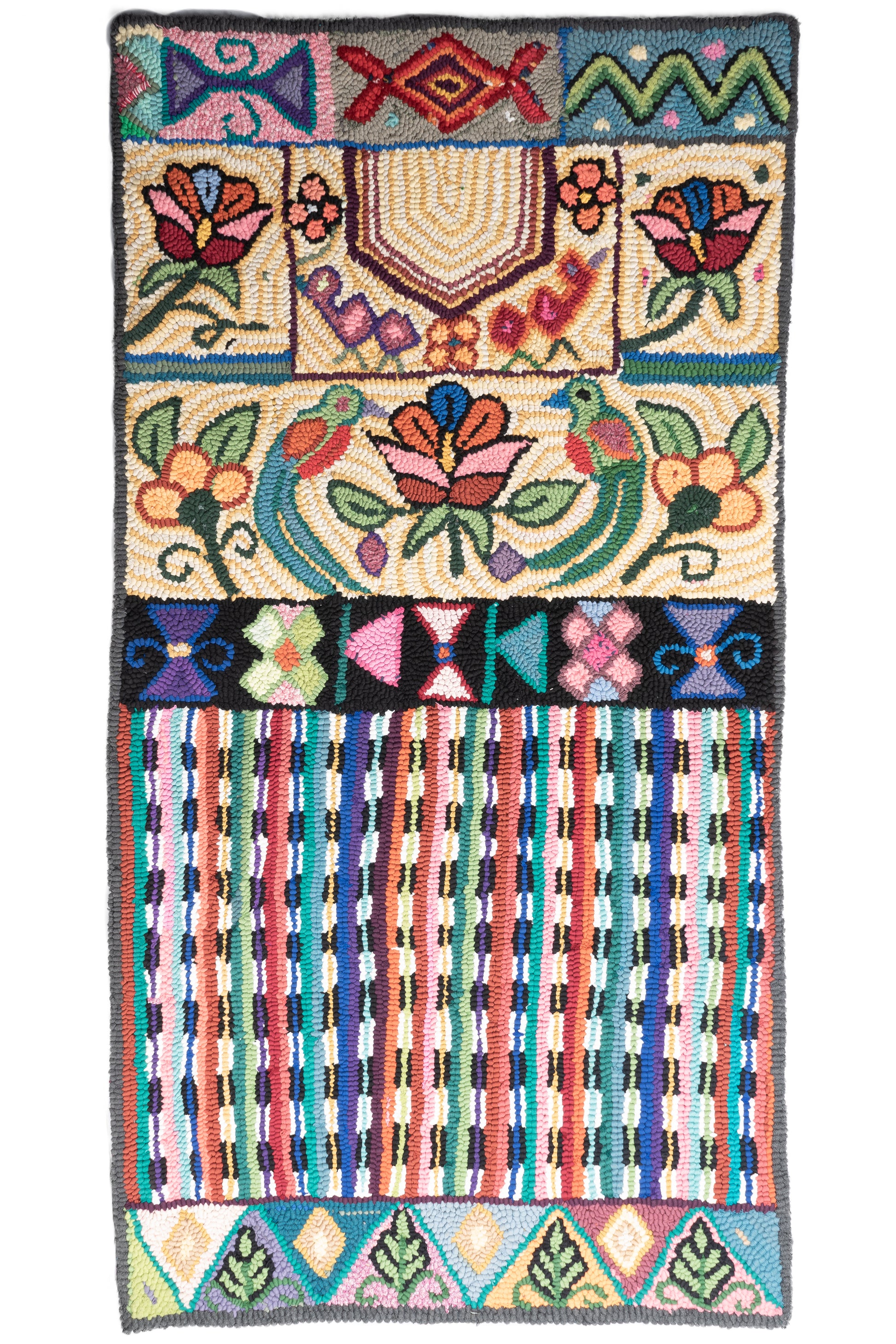 This work of art was designed and crafted by Carmen Maldonado García, member of the Chirijquiac rug hooking group.