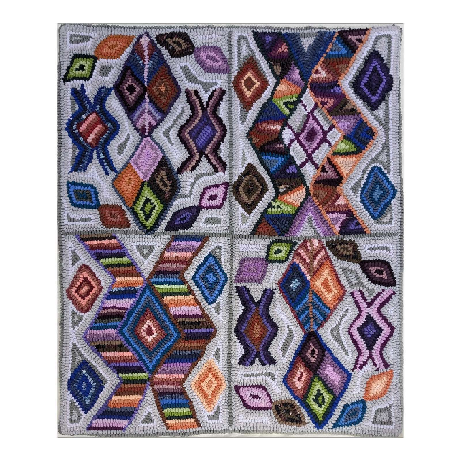 This work of art was designed and crafted by Nicolasa Pacay Barán de Barreno, member of the Patanatic rug hooking group. This piece is unique and the design is the result of the artist's creative vision. Made by hand in Guatemala. Material: Recycled secondhand clothing and cotton base cloth. This artwork was made using 20-22 recycled garments. Care instructions: Spot clean with warm water and mild soap recommended. Shake to remove dust or sand. Vacuum with brush attachment and gentle suction only. Lay flat to dry.