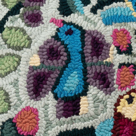 This hooked pillow was designed and crafted by María Ignacia Vicente Jocol, member of the Chirijquiac rug hooking group.