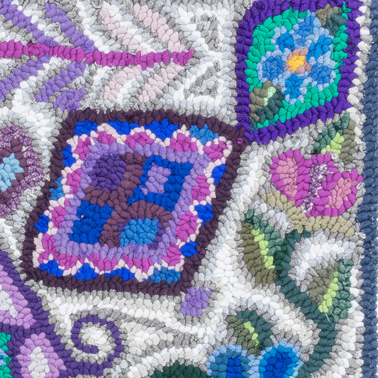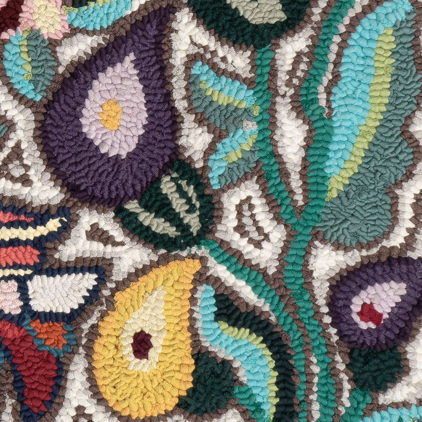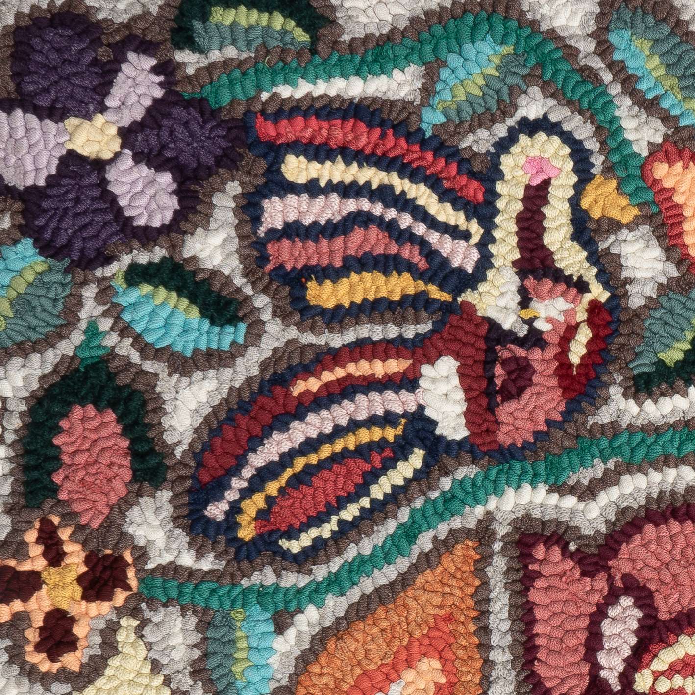 This work of art was designed and crafted by Maria Sacalxot Coti, member of the Chirijquiac rug hooking group. This piece is unique and the design is the result of the artist's creative vision.