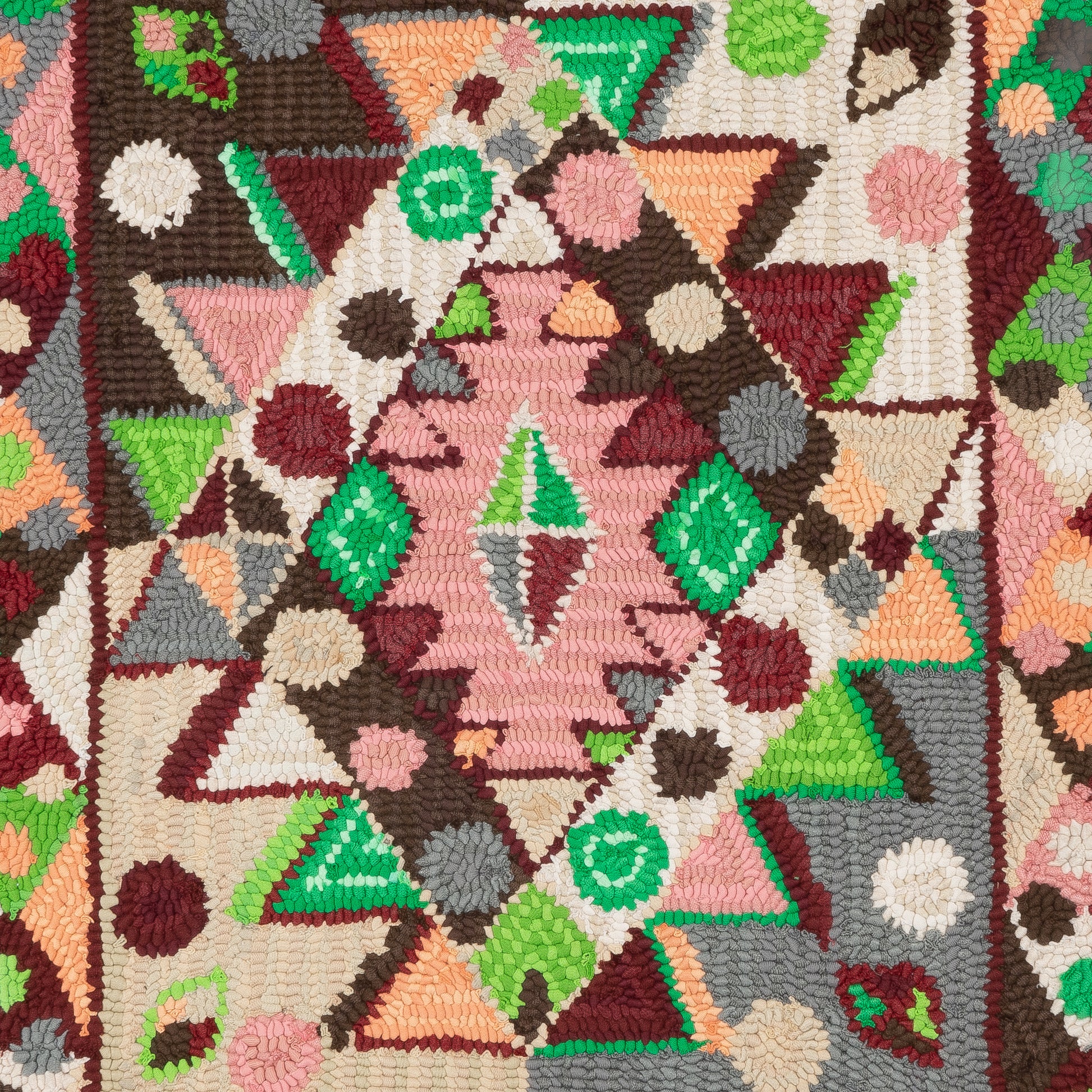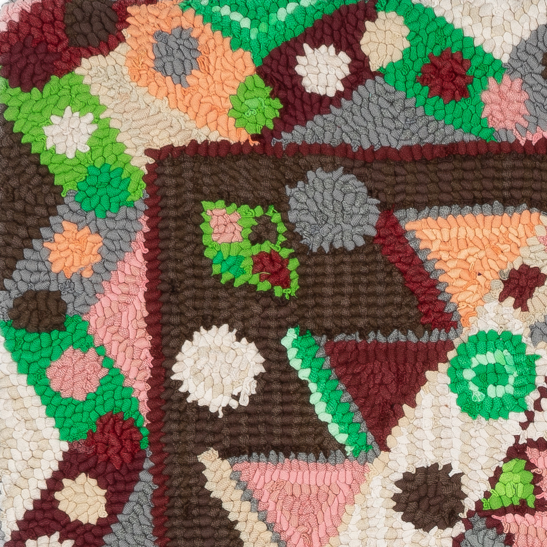 This work of art was designed and crafted by Gloria Angélica Yax Yax de Tumax, a member of the Chiyax, Totonicapán rug hooking group. This piece is unique, and the design reflects the artist's creative vision.