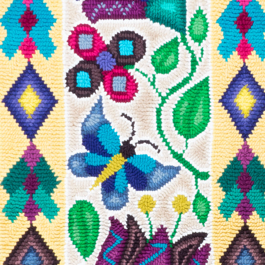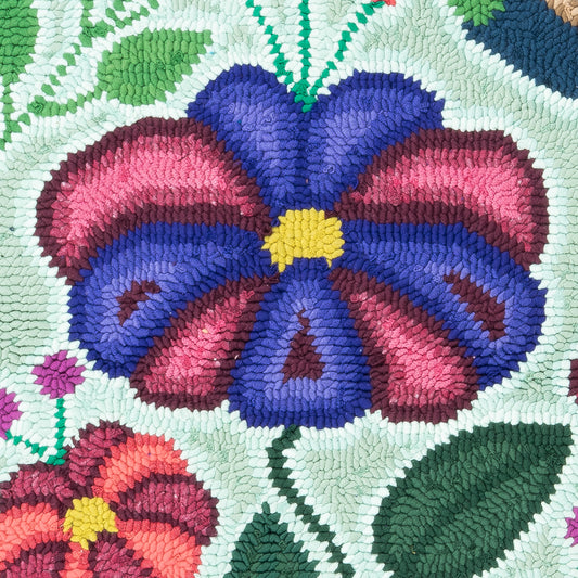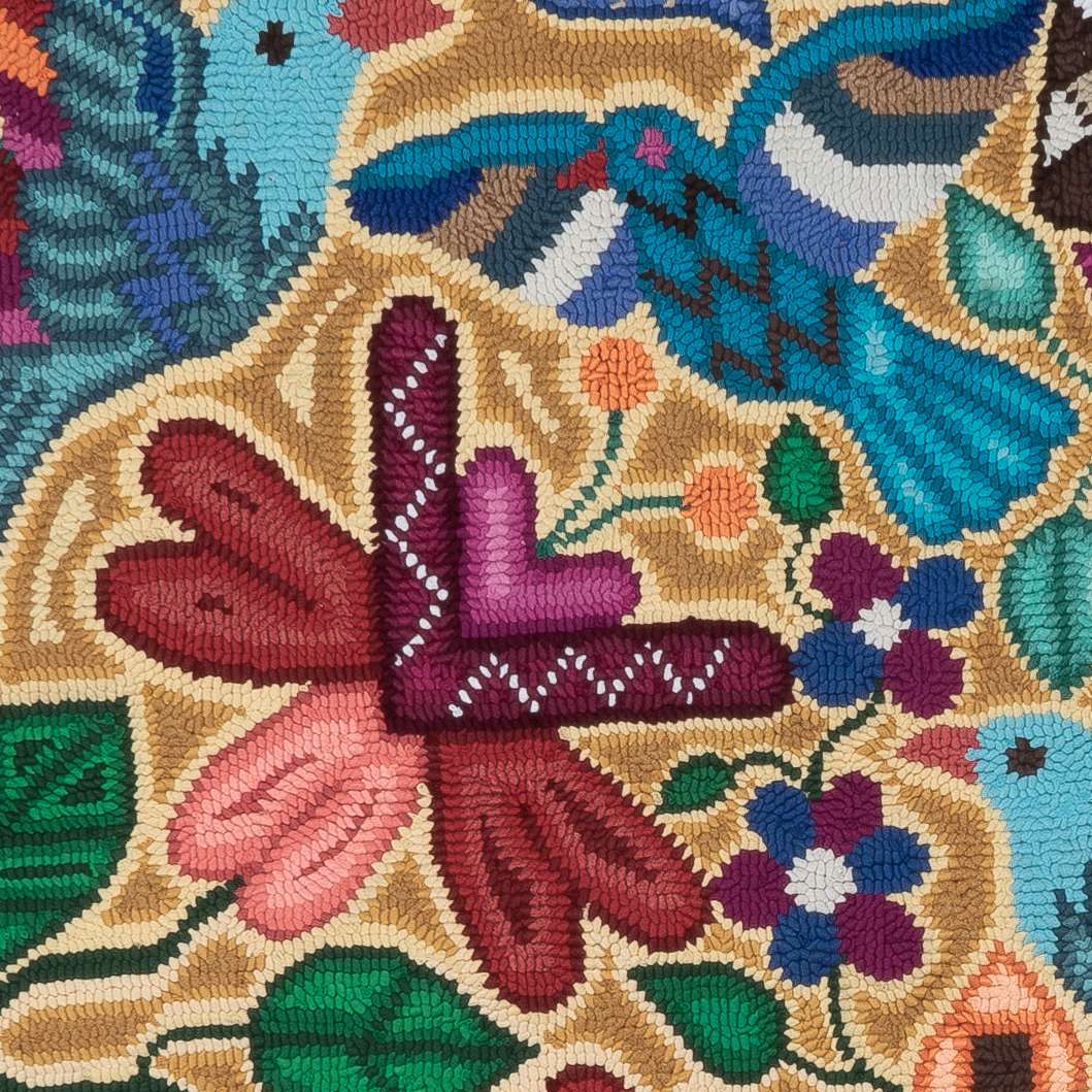 This work of art was designed and crafted by Lidia Griselda Pich Chopén, member of the Chuacruz rug hooking group.