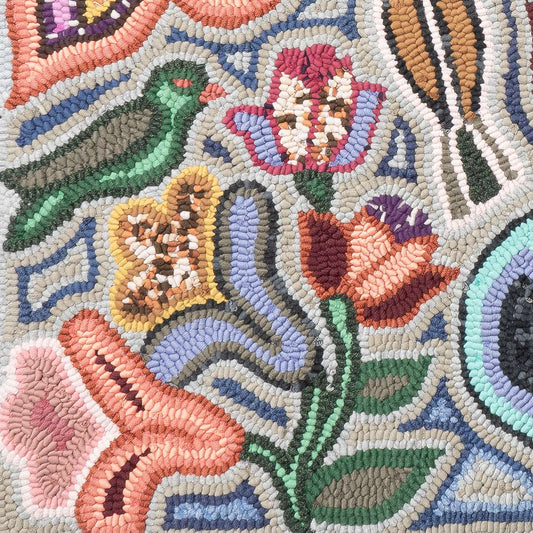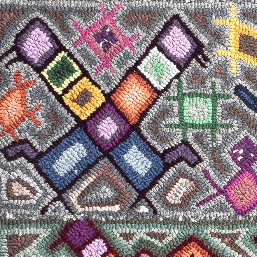 This work of art was designed and crafted by Bartola Morales Tol, member of the Patanatic rug hooking group.
