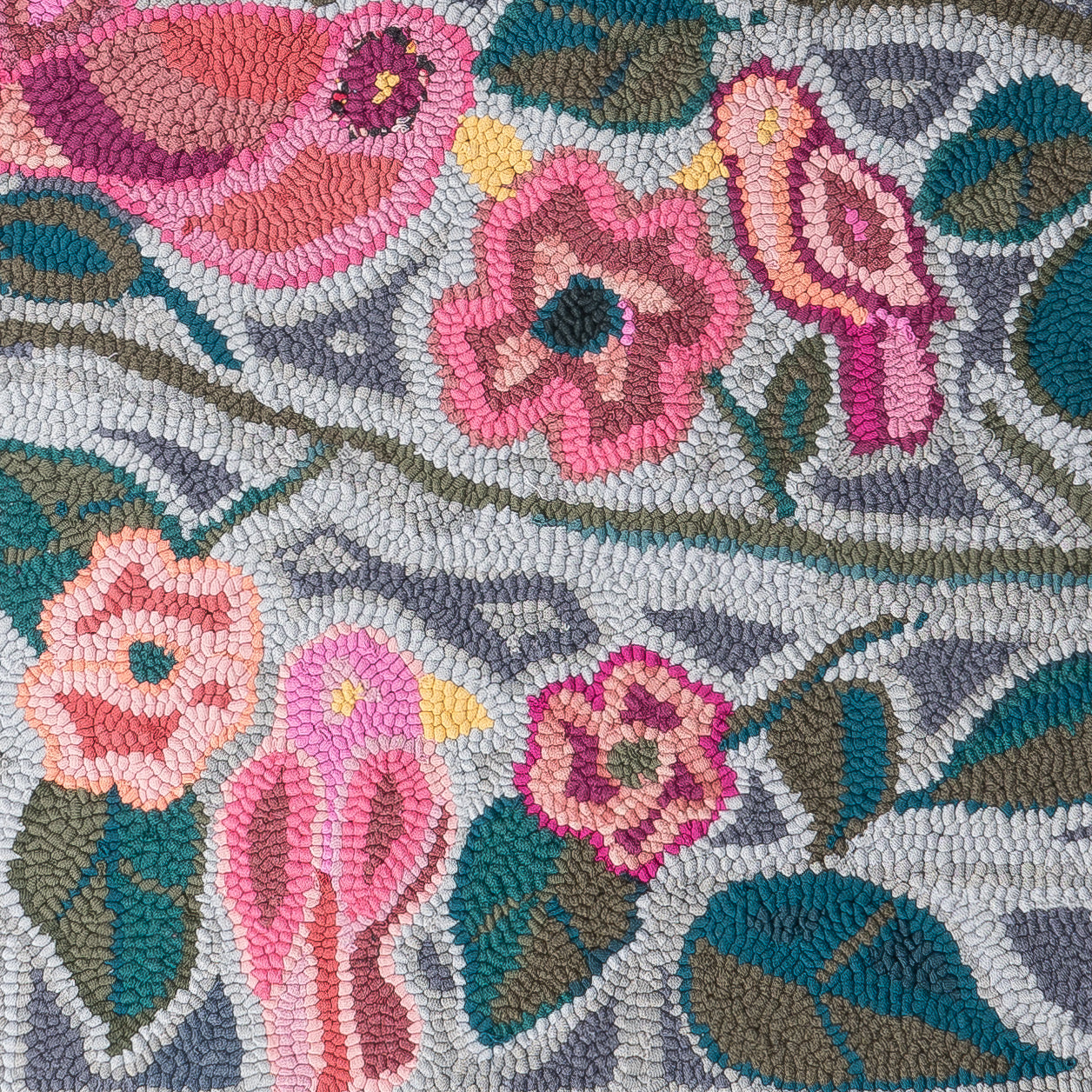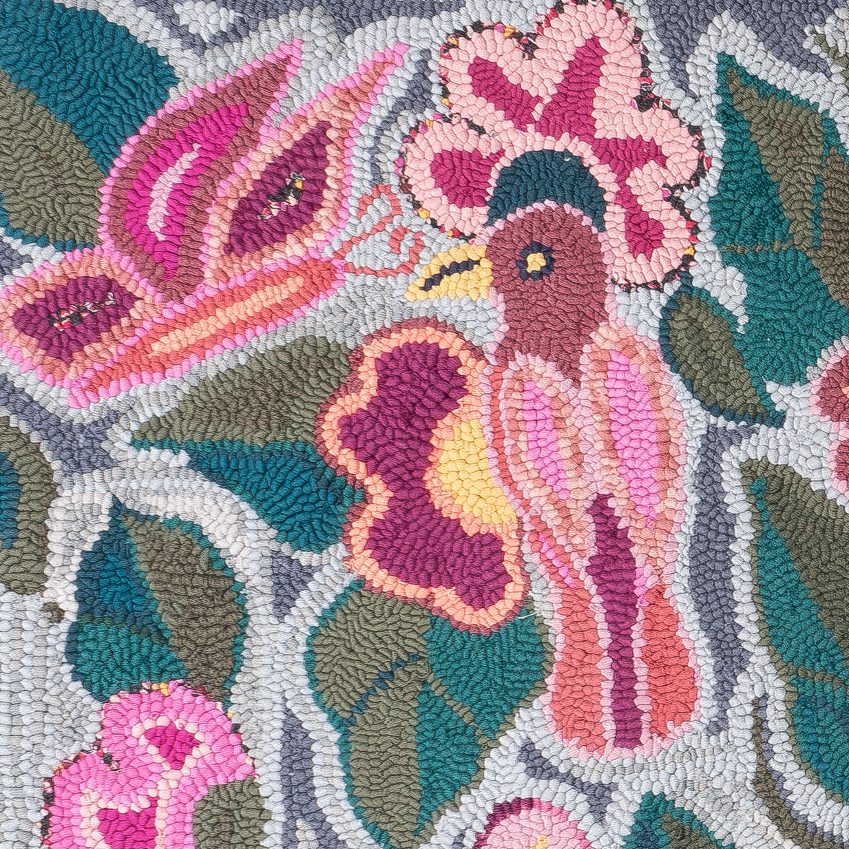 This work of art was designed and crafted by Juana Calel Yax de González, member of the Patanatic rug hooking group.