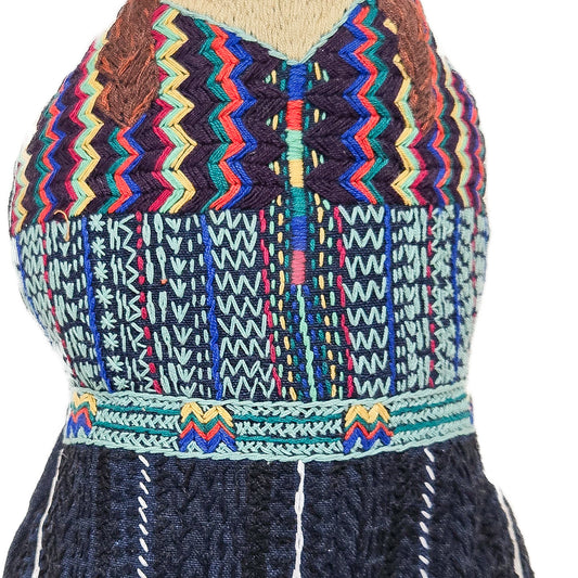 Hand-embroidered, one of a kind, cushion doll made by an artist from one of the 9 Guatemalan communities we work with. Each cushion doll is a unique expression of the artist´s creativity.