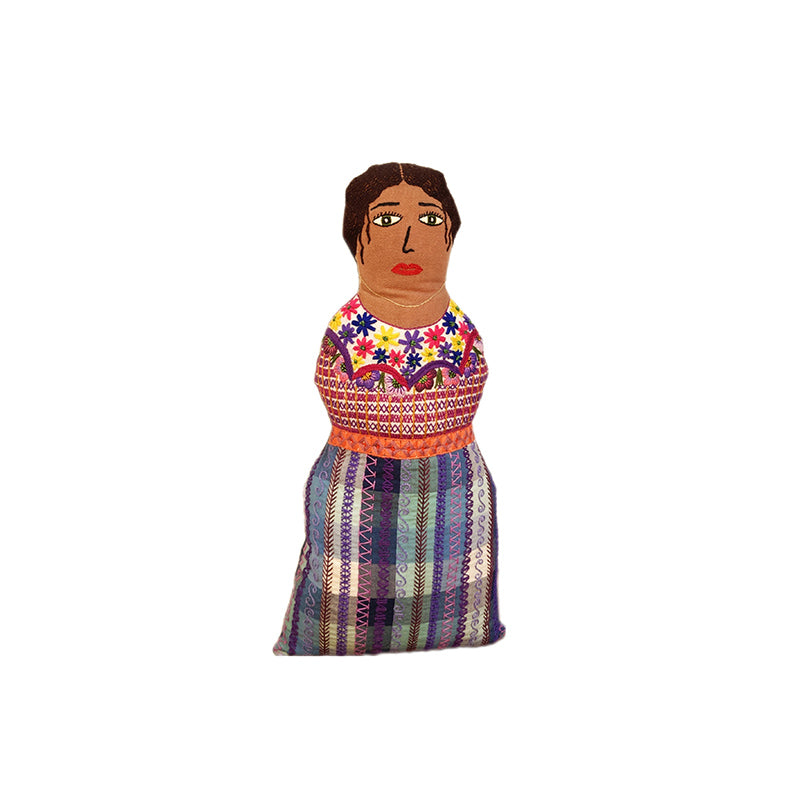 Hand-embroidered, one of a kind, cushion doll made by an artist from one of the 9 Guatemalan communities we work with. Each cushion doll is a unique expression of the artist´s creativity.
