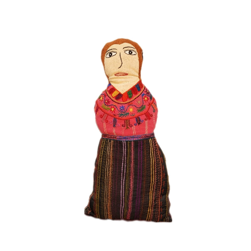 Hand-embroidered, one of a kind, cushion doll made by an artist from one of the 9 Guatemalan communities we work with. Each cushion doll is a unique expression of the artist´s creativity.