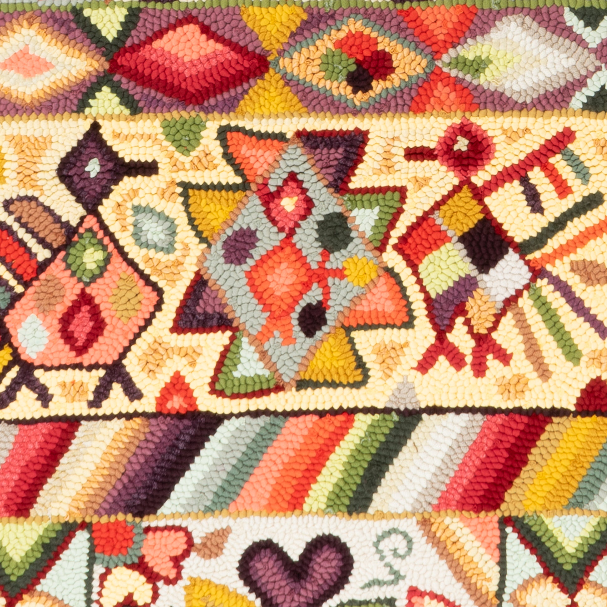 This work of art was designed and crafted by Dominga Carmelina Huix Cotí member of Chirijquiac_Quetzaltnango the rug hooking group.