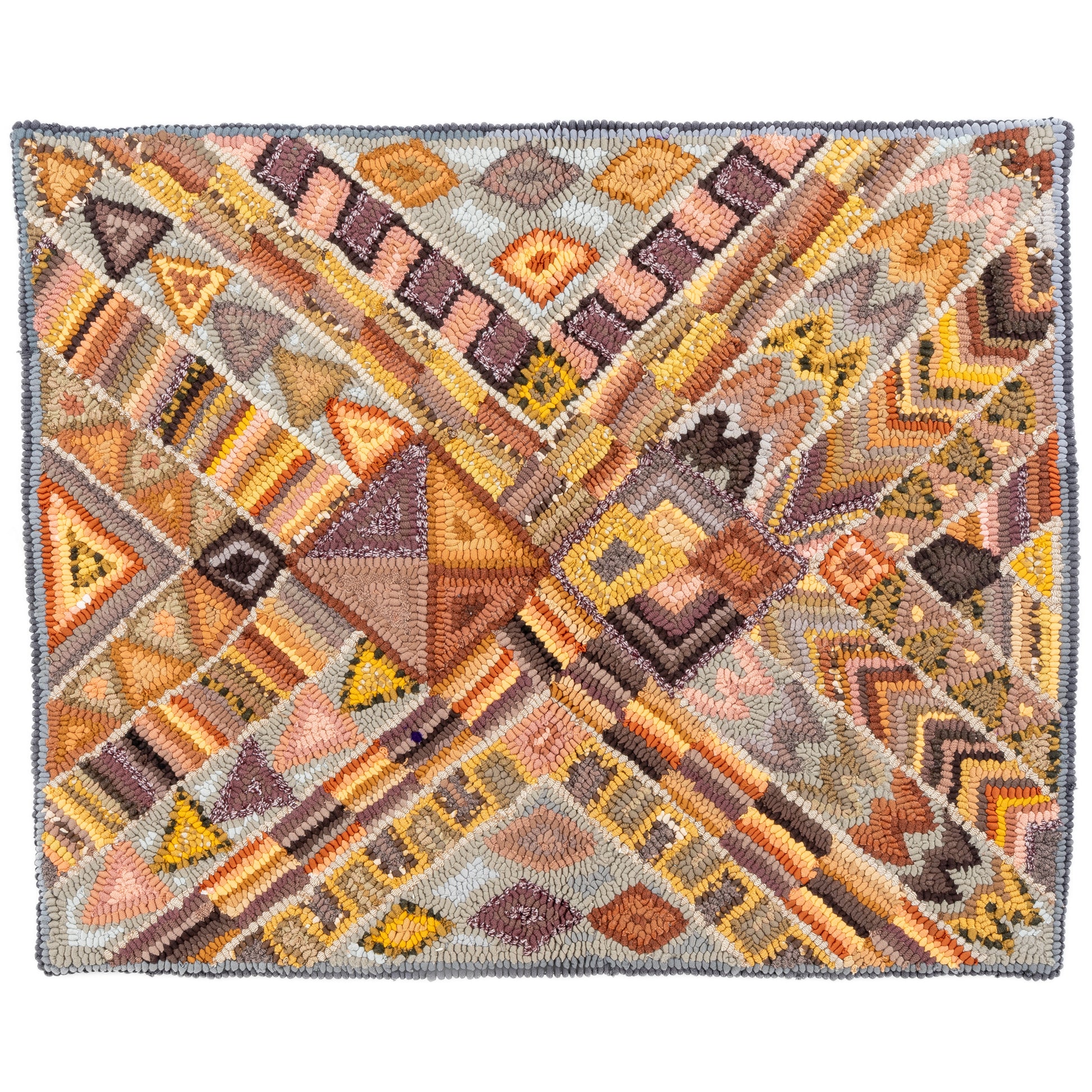 This work of art was designed and crafted by Nicolasa Pacay Barán de Barreno, member of the Patanatic rug hooking group. This piece is unique and the design is the result of the artist's creative vision.