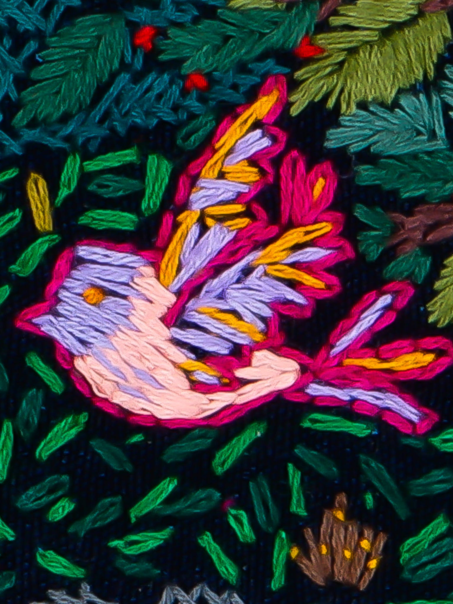My inspiration for creating this portrait comes from the birds of Guatemala. Every time I see them soar among hills and volcanoes, I feel motivated to fight for what my heart desires. In those moments, I connect with my inner peace and with the deep desire to not follow what society dictates. To me, birds symbolize the freedom to be authentic, without letting others’ expectations define who I am.